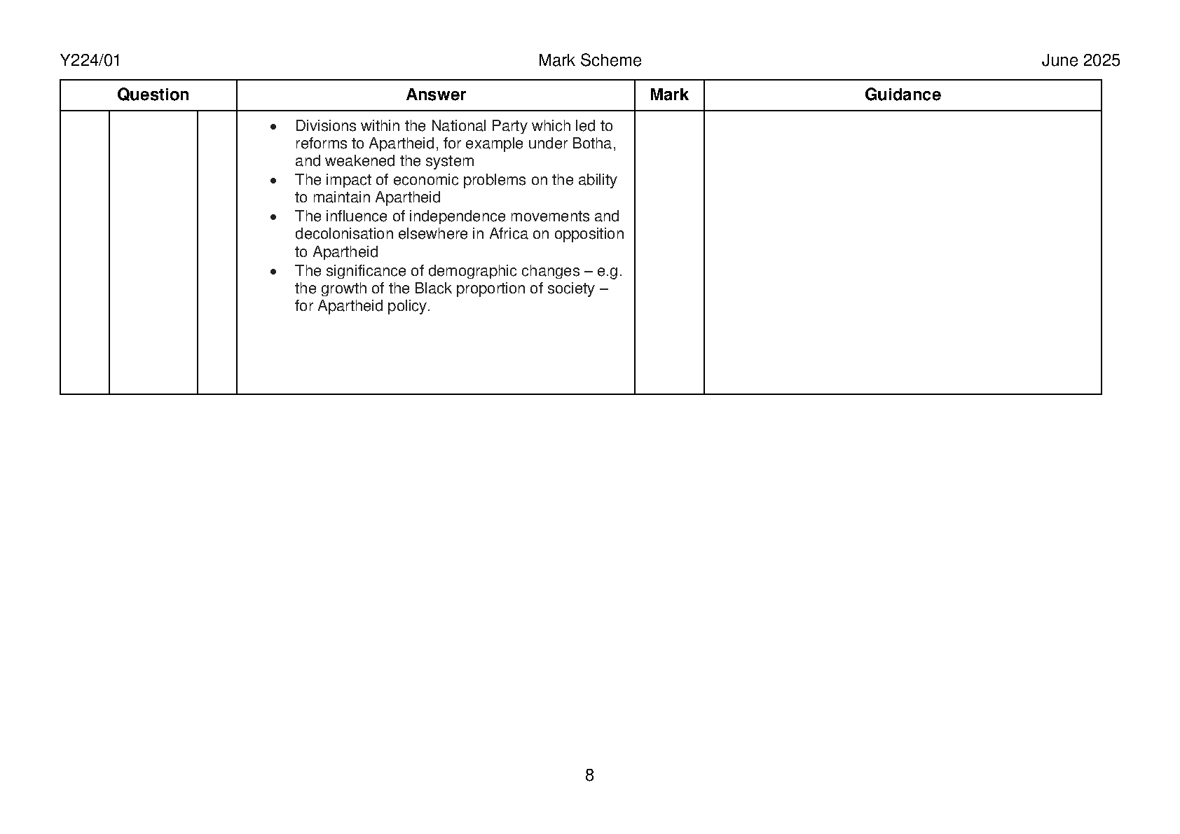 2025 OCR A Level History A Paper 1 and Mark Scheme Combined Y224/01 Apartheid and Reconciliation: South African Politics 1948–1999)