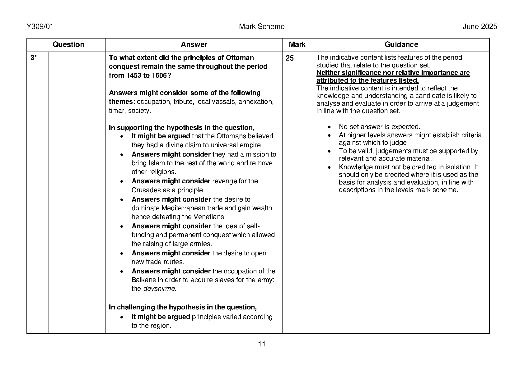 2025 OCR A Level History A Paper 1 and Mark Scheme Combined (Y309/01 The Ascendancy of the Ottoman Empire 1453–1606)