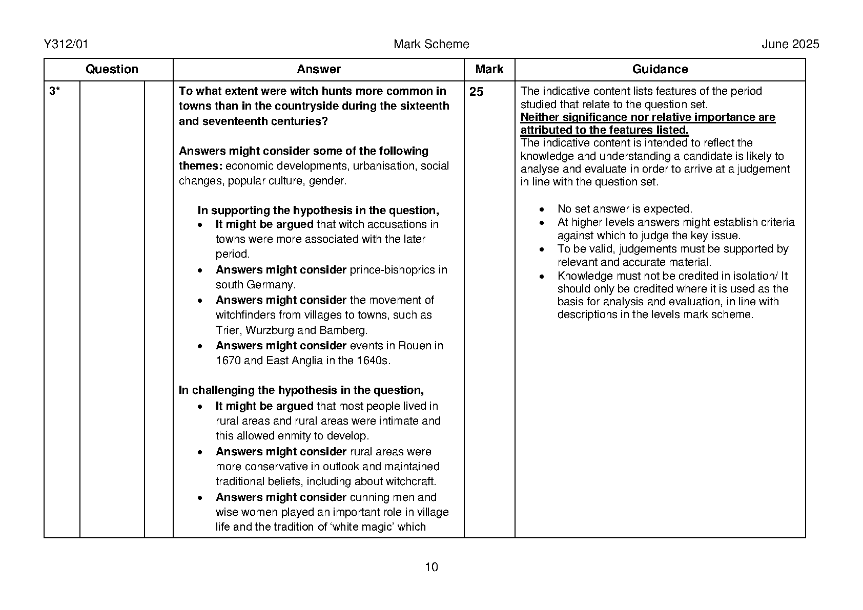 2025 OCR A Level History A Paper 1 and Mark Scheme Combined (Y312/01 Popular Culture and the Witchcraze of the 16th and 17th Centuries)