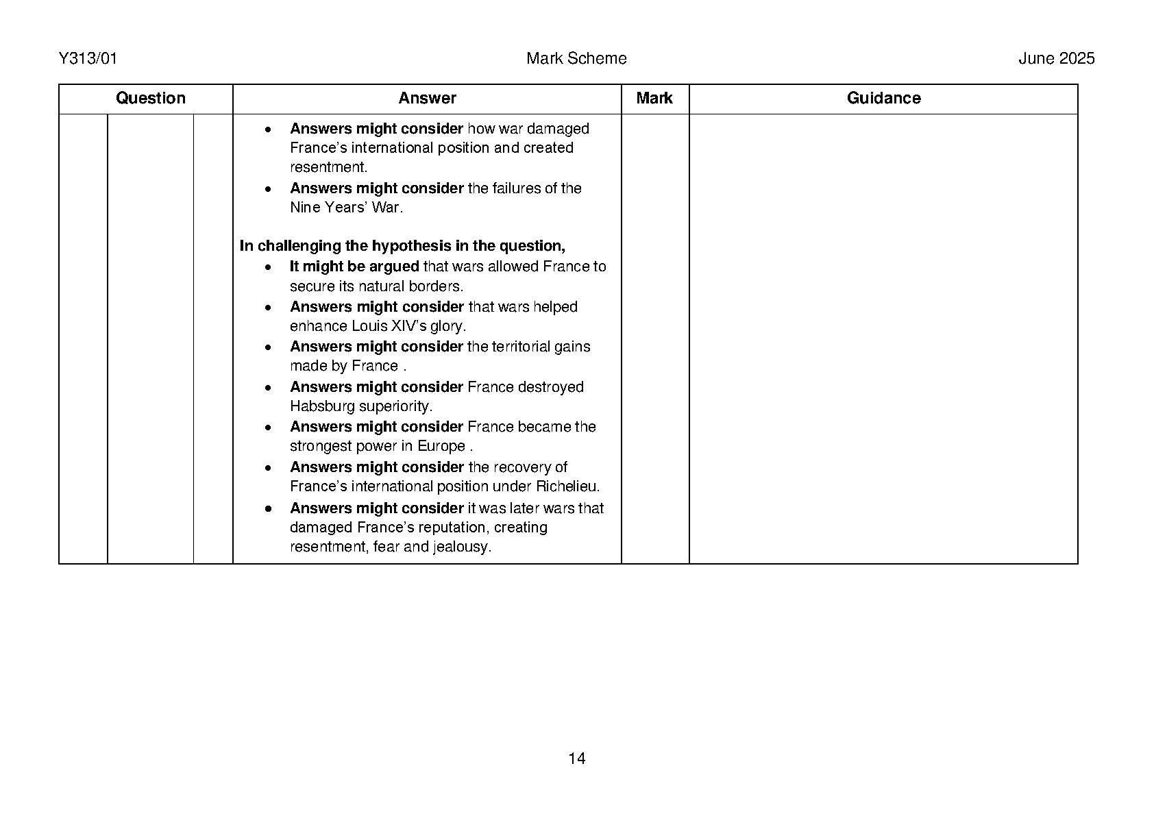 2025 OCR A Level History A Paper 1 and Mark Scheme Combined (Y313/01 The Ascendancy of France 1610–1715)
