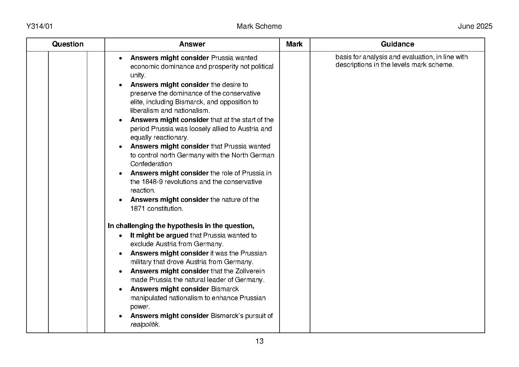 2025 OCR A Level History A Paper 1 and Mark Scheme Combined (Y314/01 The Challenge of German Nationalism 1789–1919)
