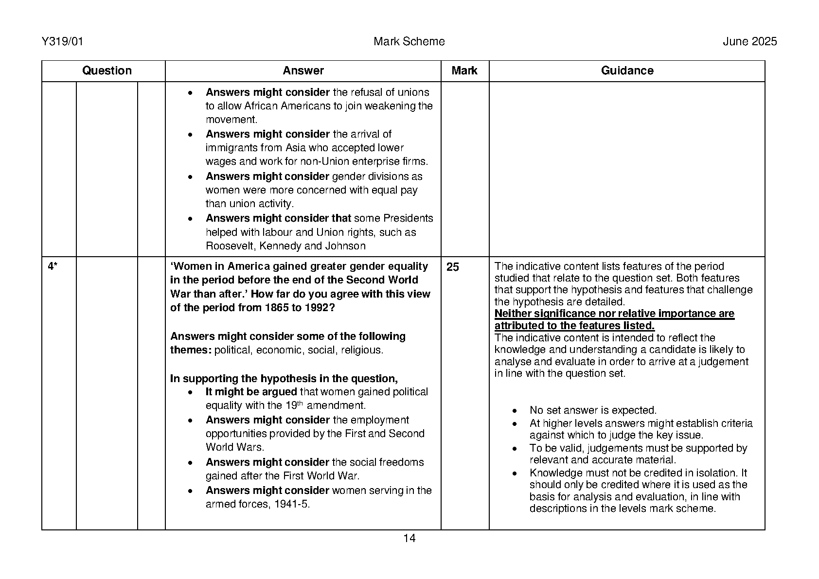 2025 OCR A Level History A Paper 1 and Mark Scheme Combined (Y319/01 Civil Rights in the USA 1865–1992)