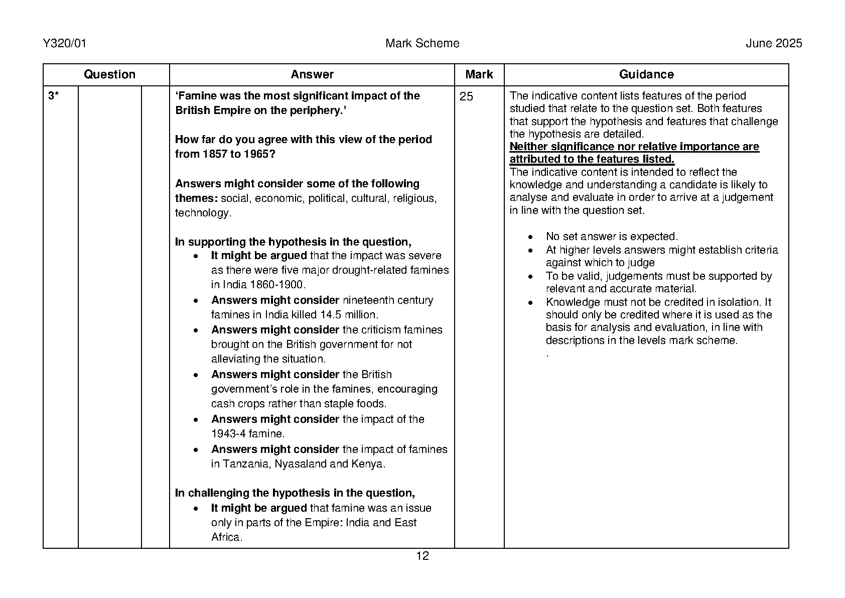 2025 OCR A Level History A Paper 1 and Mark Scheme Combined (Y320/01 From Colonialism to Independence: The British Empire 1857–1965)