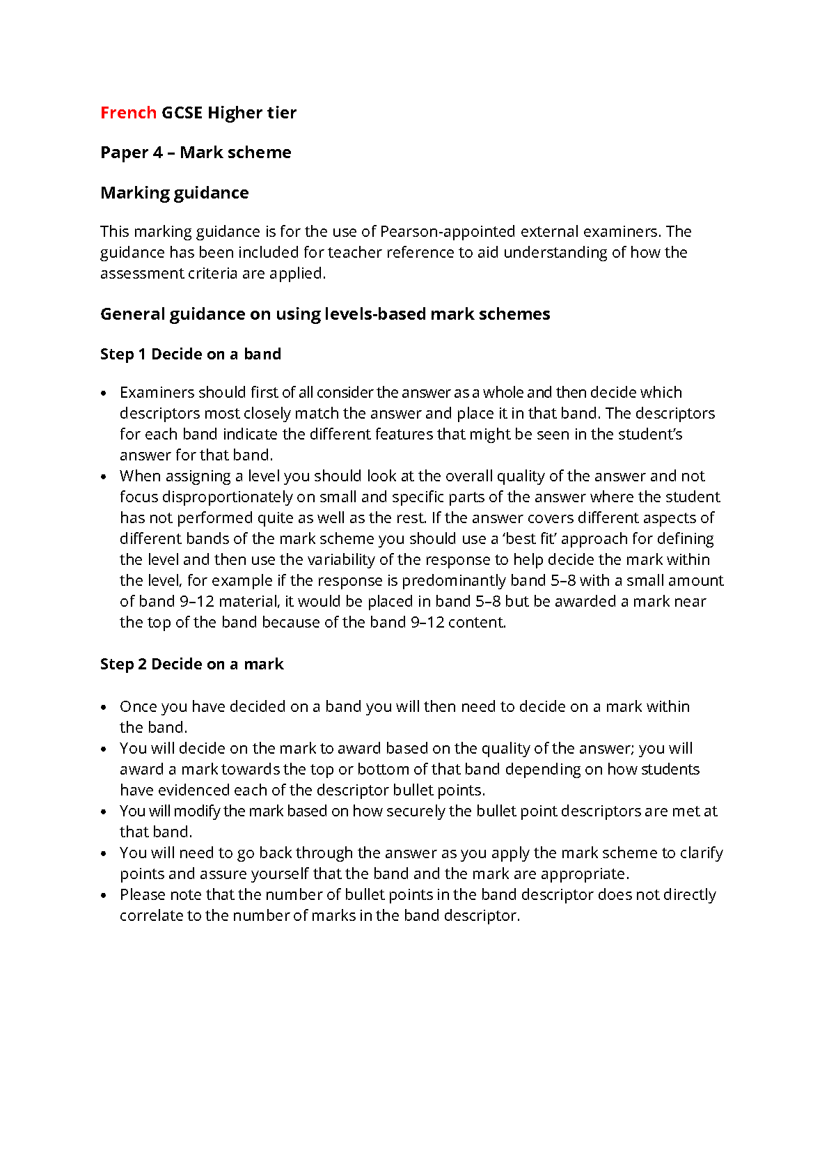 | Q4 | Translation from English into French | 10 marks Pearson Qualifications+1 |