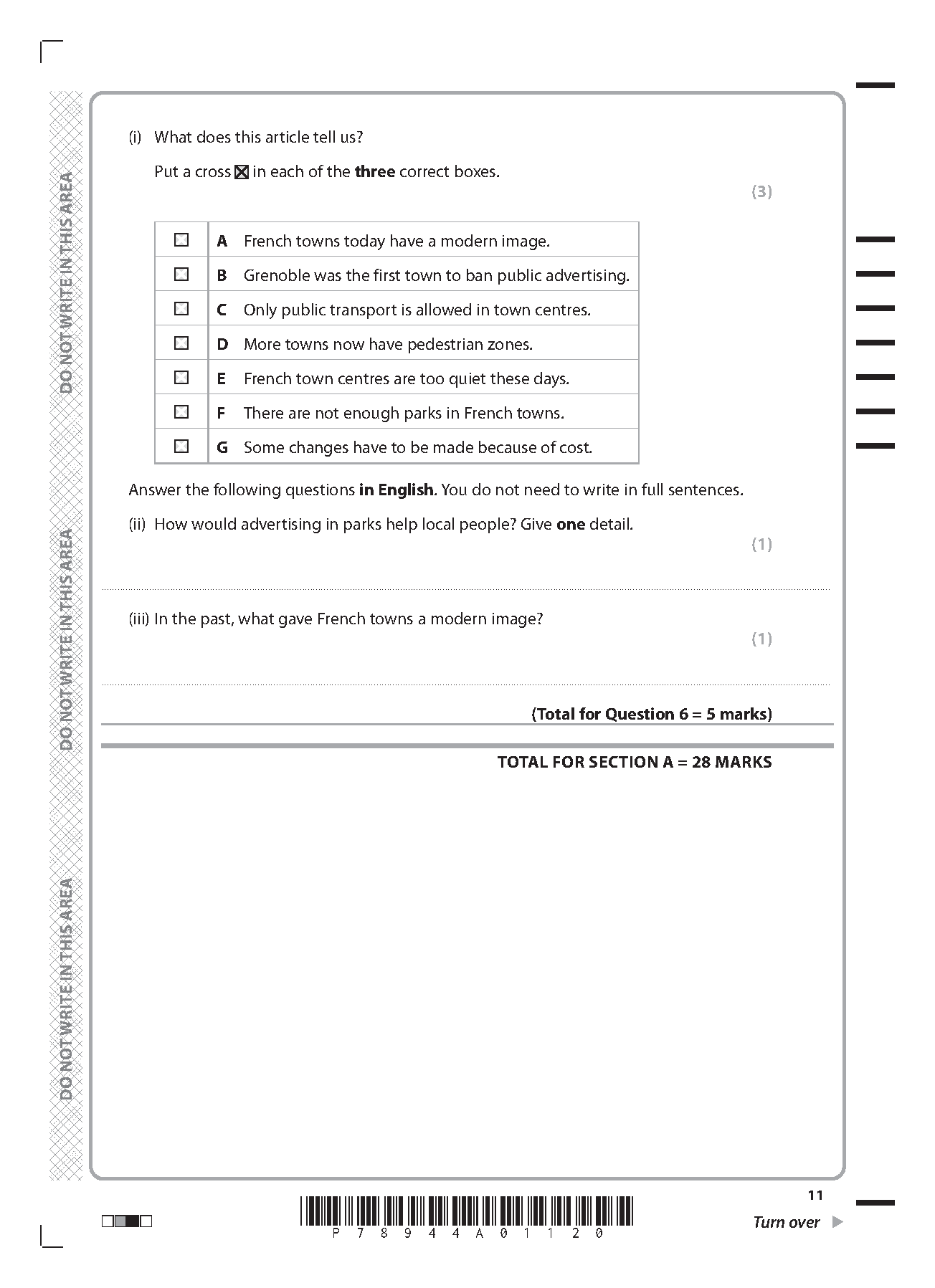 Purpose: To assess a student’s comprehension of written French — both in familiar and unfamiliar contexts, formal and informal, across a variety of text types (e.g. adverts, articles, emails, dialogues, notices, longer texts).