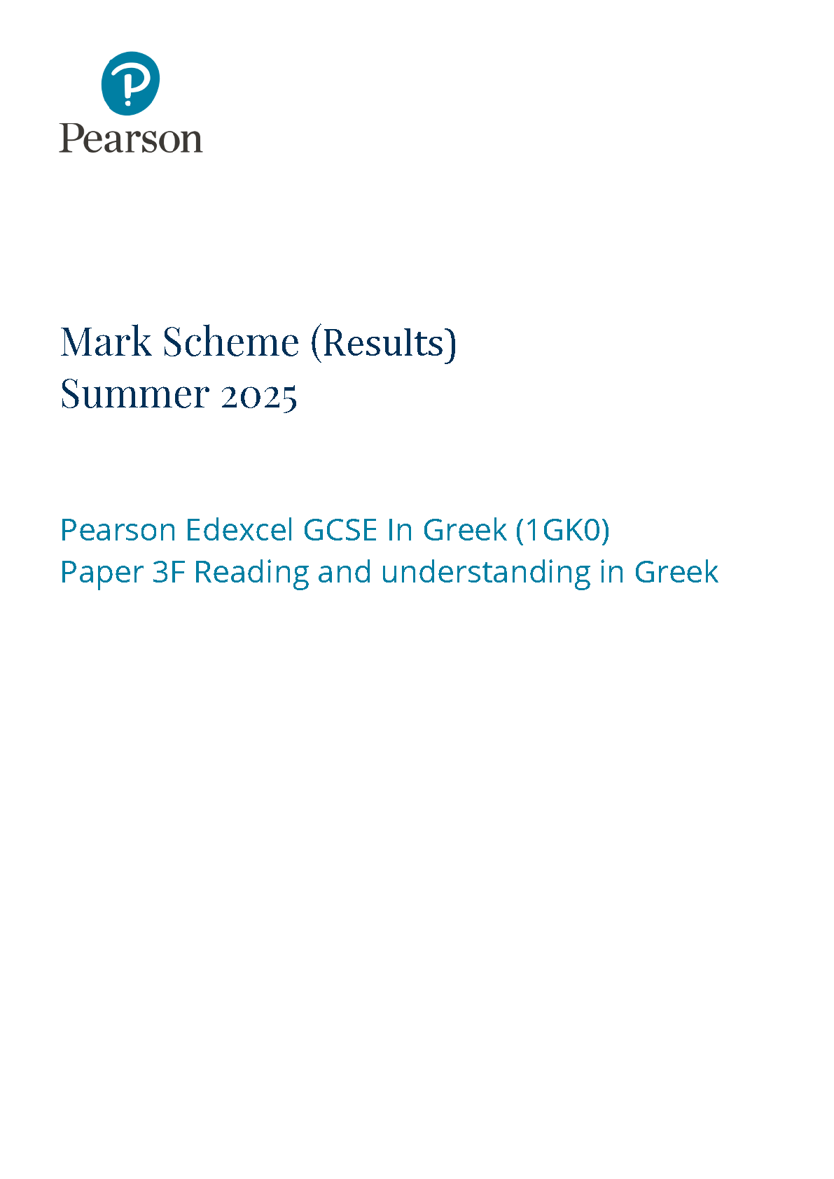 2025 Pearson Edexcel GCSE Greek Paper 3F and Mark Scheme Combined (1GK0/3F: Reading and understanding in Greek Foundation Tier)
