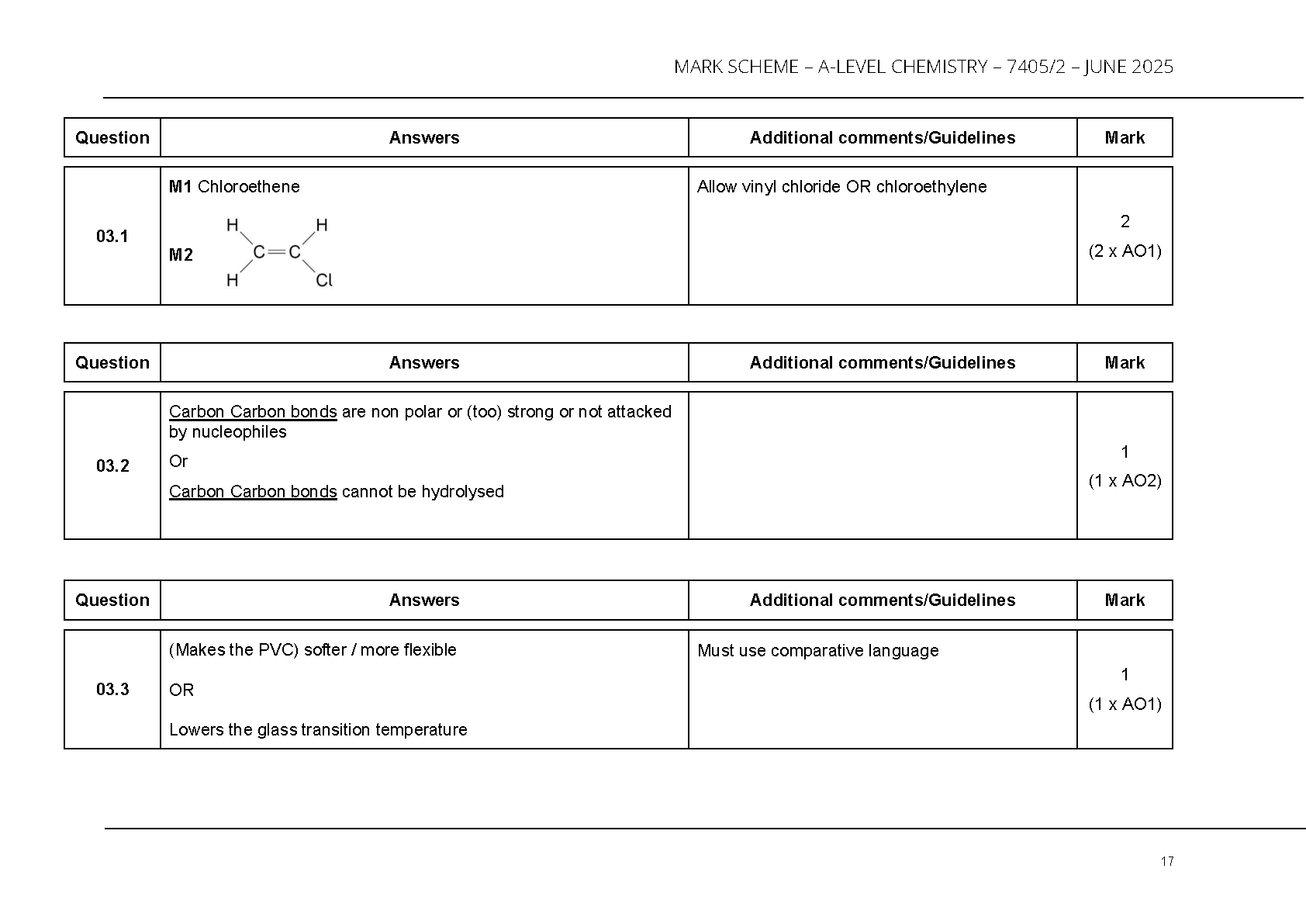 AQA A LEVEL CHEMISTRY PAPER 2 2025 MARK SCHEME