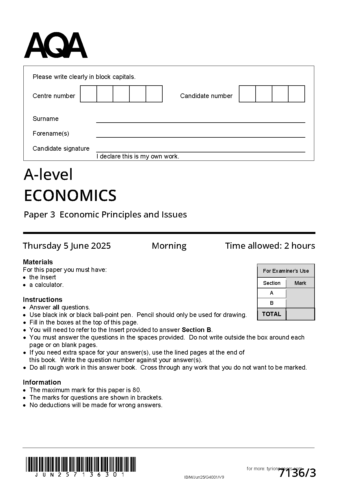 AQA A LEVEL ECONOMICS PAPER 3 2025 (7136/3: Economic Principles and Issues). DOWNLOAD this verified paper on www.leakedexams.com/user/portfolio/21/Creative%20Educator and access the PDF INSTANTLY!!!