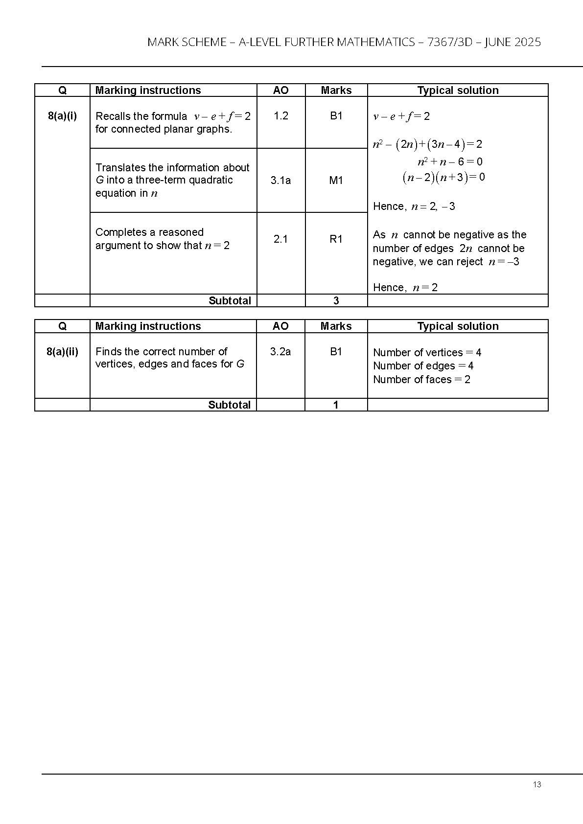 AQA A LEVEL FURTHER MATHEMATICS PAPER 3D 2025 MARK SCHEME (7367/3D)