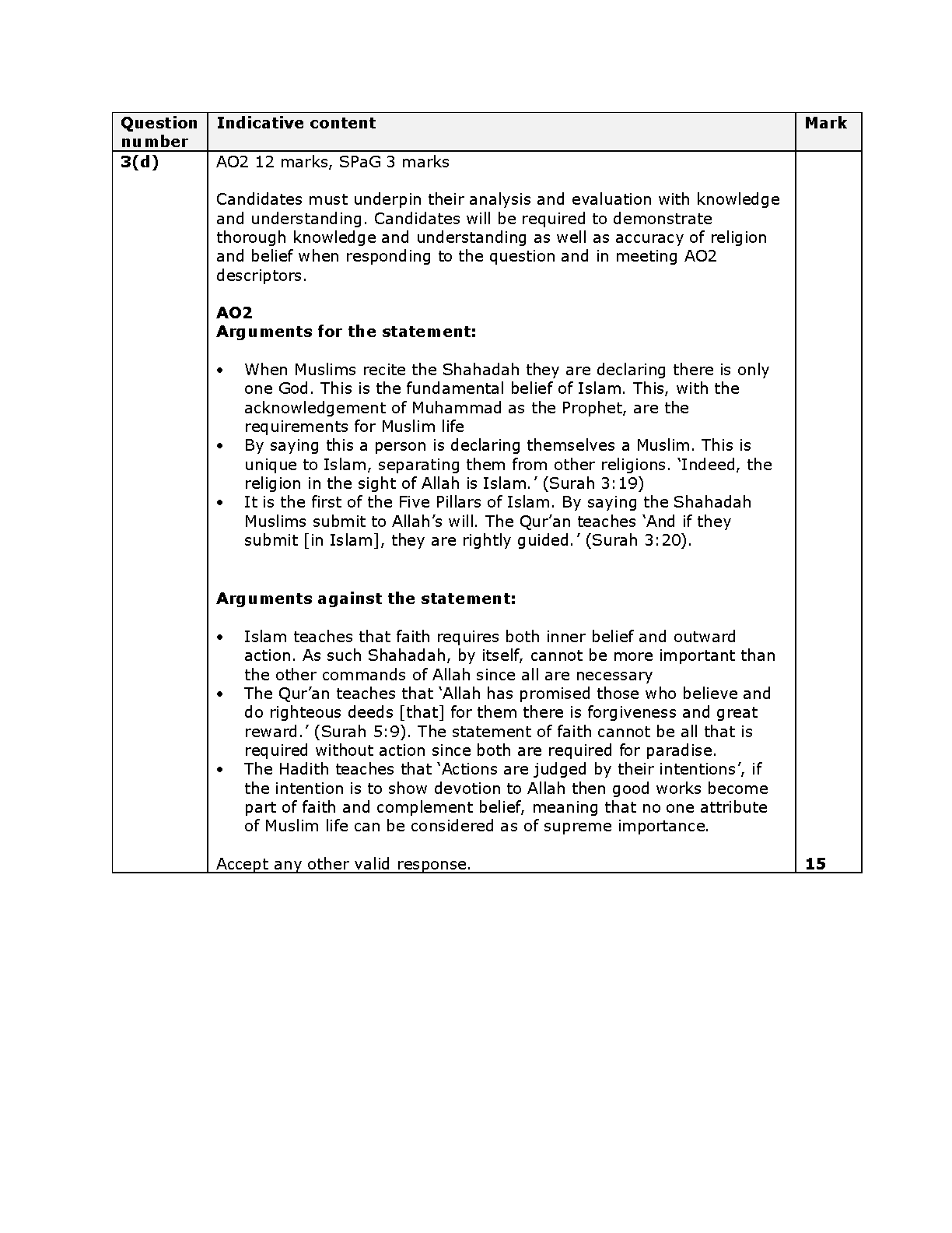 The exam includes a variety of question types such as short-answer questions, source analysis, and extended writing, testing knowledge, interpretation, and evaluation of key beliefs, teachings, practices, and ethical issues in Islam. The accompanying mark scheme provides clear guidance on mark allocation, acceptable answers, and examiner expectations, ensuring accurate and consistent assessment.