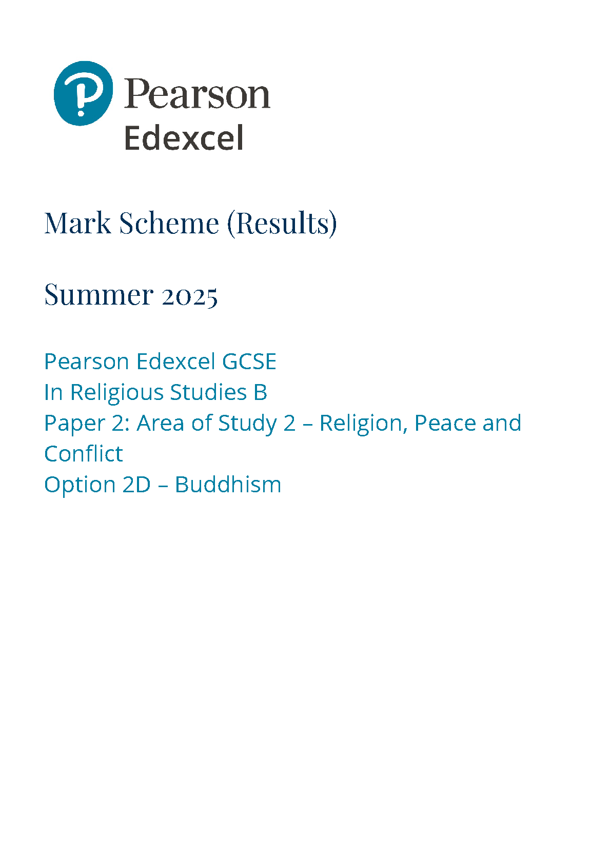 2025 Pearson Edexcel GCSE Religious Studies B PAPER 2 and Mark Scheme Combined (1RB0/2D: Buddhism)
