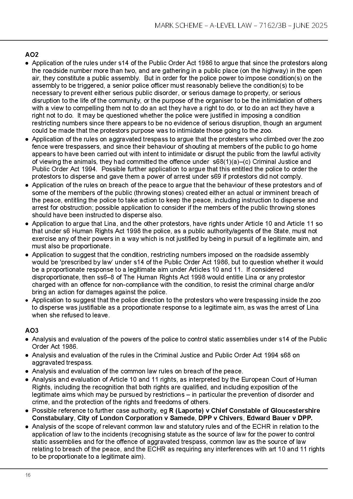AQA A LEVEL LAW PAPER 3B 2025 MARK SCHEME (7162/3B)