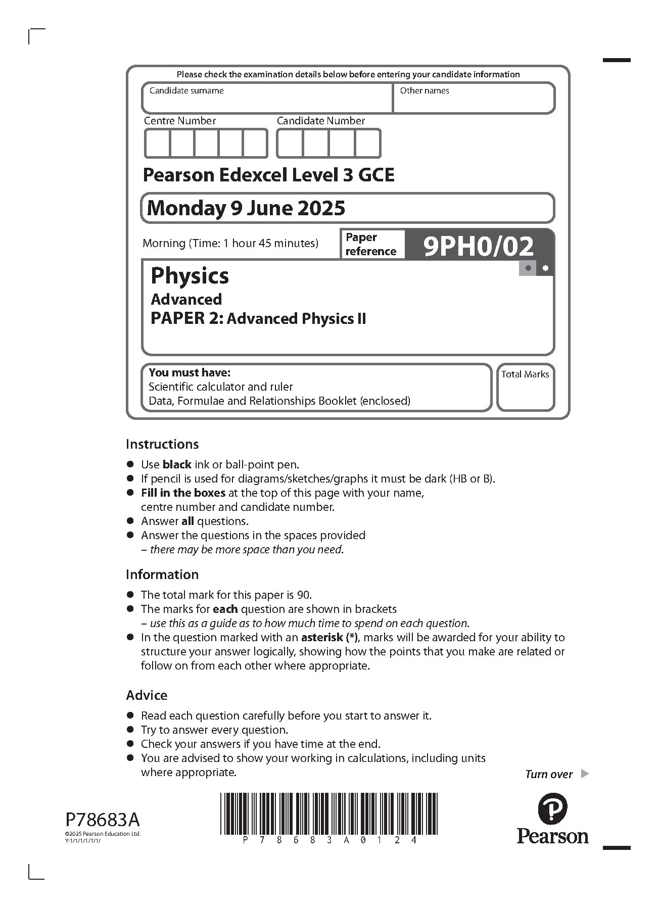 2025 Pearson Edexcel A Level Physics Paper 2 and Mark Scheme Combined (9PH0/02: Advanced Physics II)