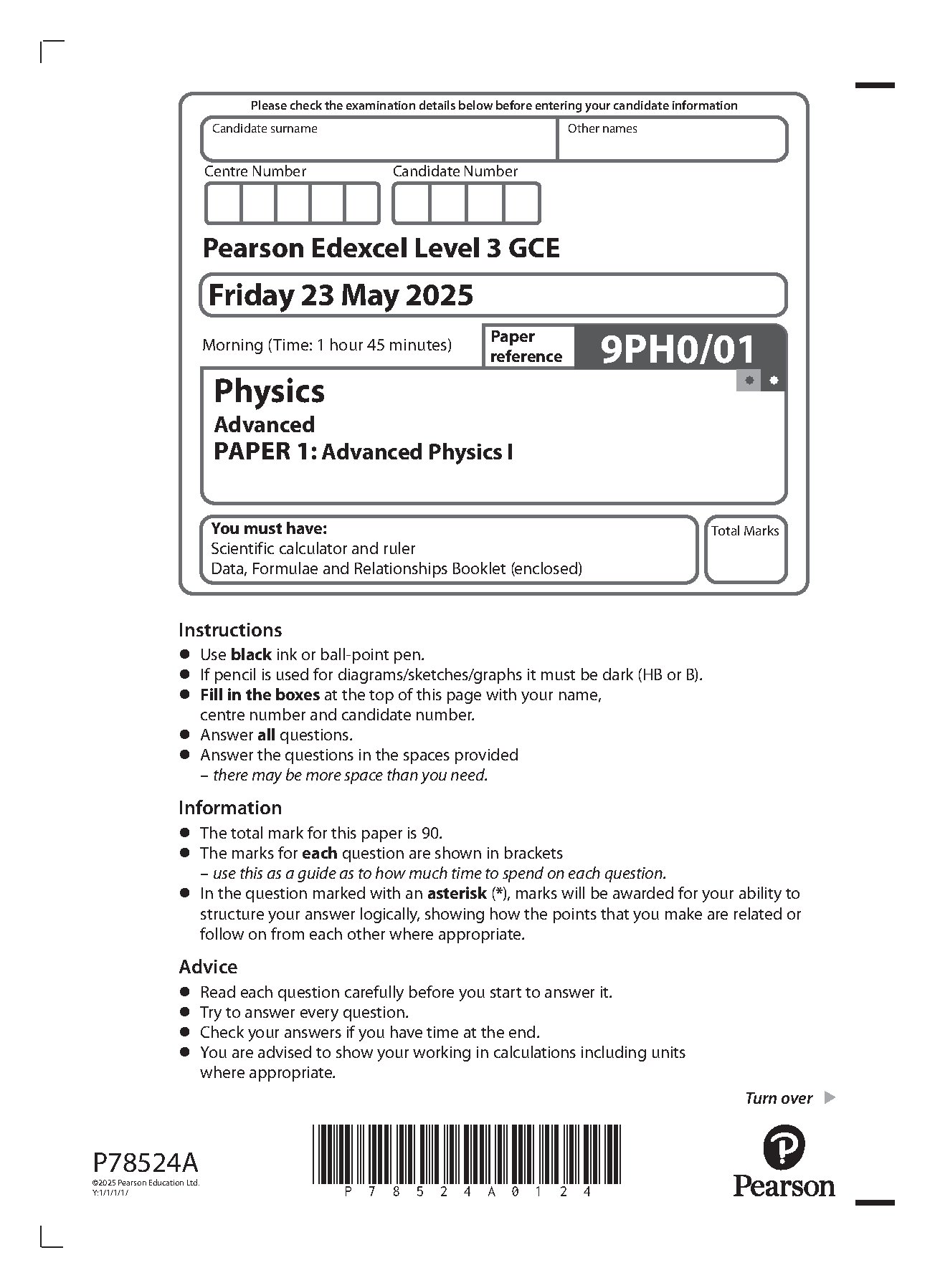 2025 Pearson Edexcel A Level Physics Paper 1 and Mark Scheme Combined (9PH0/01: Advanced Physics I)