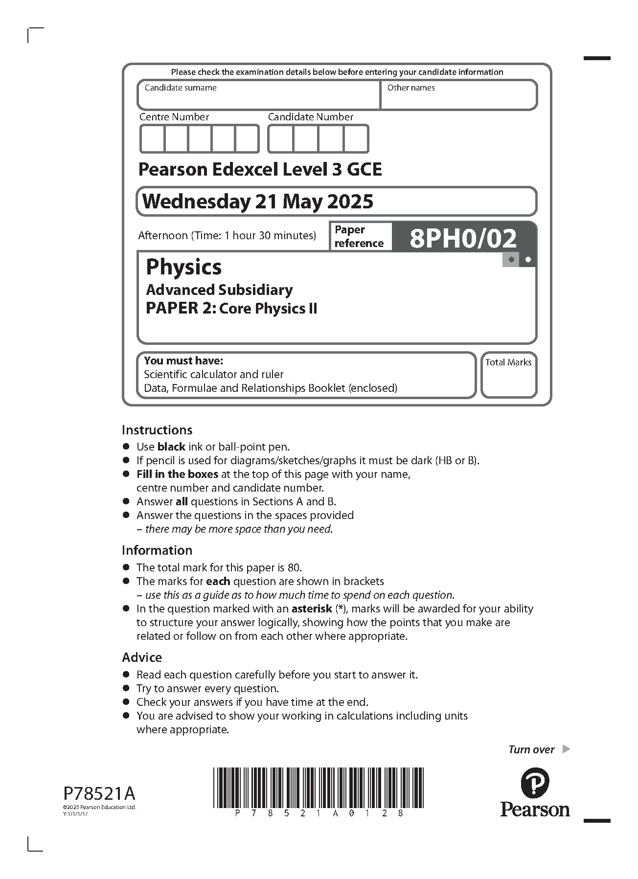 2025 Pearson Edexcel AS Level Physics Paper 2 and Mark Scheme Combined (8PH0/02: Core Physics II)