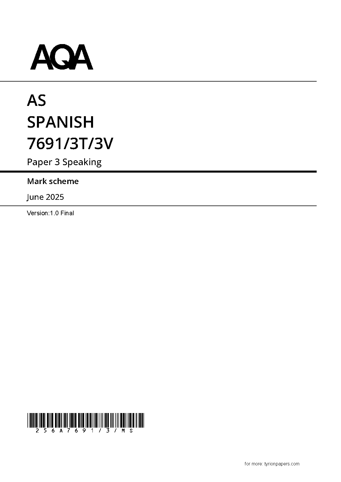 AQA AS SPANISH PAPER 3 2025 MARK SCHEME (7691/3T/3V: Speaking). DOWNLOAD this verified paper on www.leakedexams.com and access the PDF INSTANTLY!!!