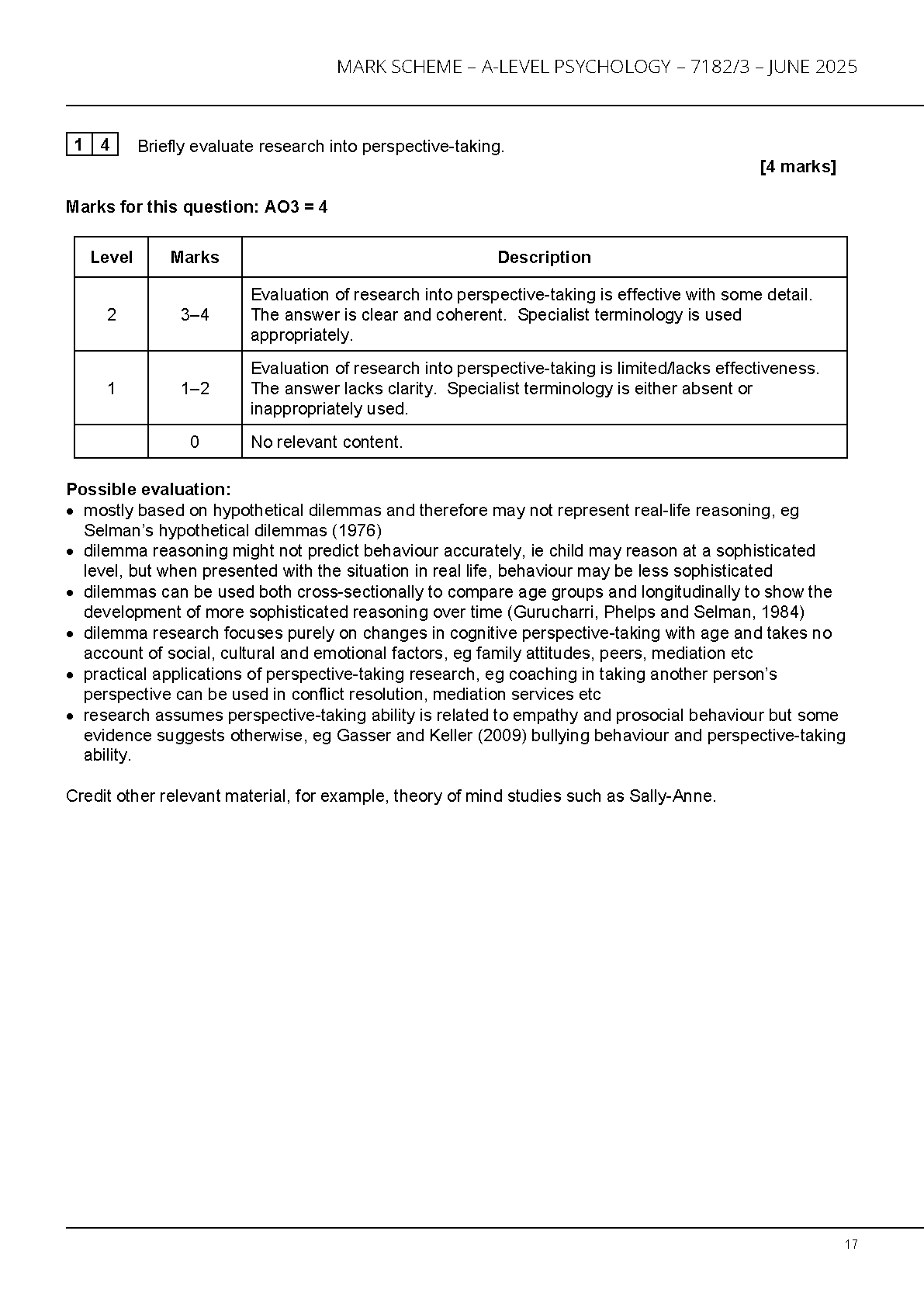AQA A LEVEL PSYCHOLOGY PAPER 3 2025 MARK SCHEME (7182/3)