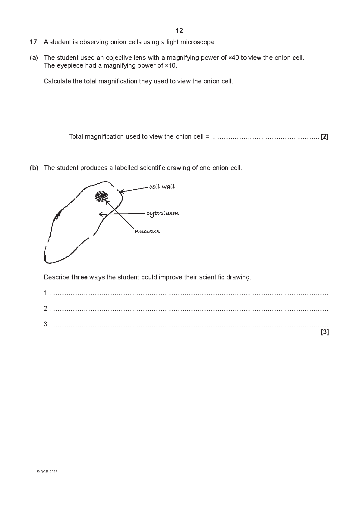 2024 OCR GCSE BIOLOGY A PAPER 1 MARK SCHEME (J247/...