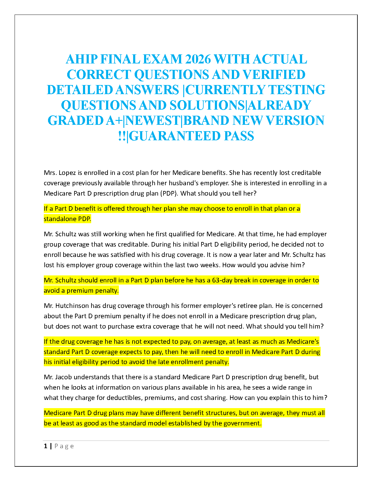 Ace your AHIP certification with our comprehensive 2026 Final Exam Test Bank. This A+ graded study guide features the latest collection of actual exam questions paired with meticulously verified answe...