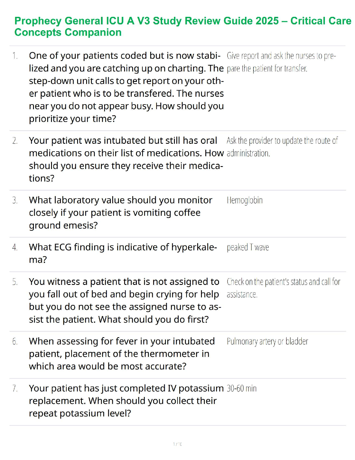 Master the Prophecy General ICU A V3 exam with our newly updated 2025/2026 study guide. This comprehensive resource is packed with the latest questions and expertly verified answers, mirroring the actual exam format. Delve into essential critical care concepts, including patient prioritization, ECG interpretation for conditions like hyperkalemia, managing intubated patients, and crucial lab value monitoring. Designed to build your confidence and knowledge, this guide is your key to acing the exam on your first attempt and advancing your nursing career. Avoid resits and study smarter with this essential critical care companion.