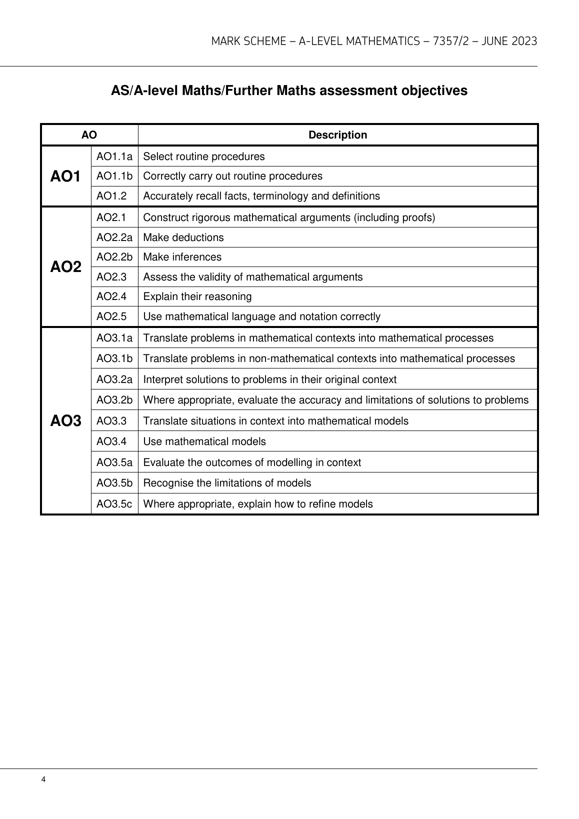 AQA A LEVEL MATHEMATICS PAPER 2 MARK SCHEME 2023 (7357/2)