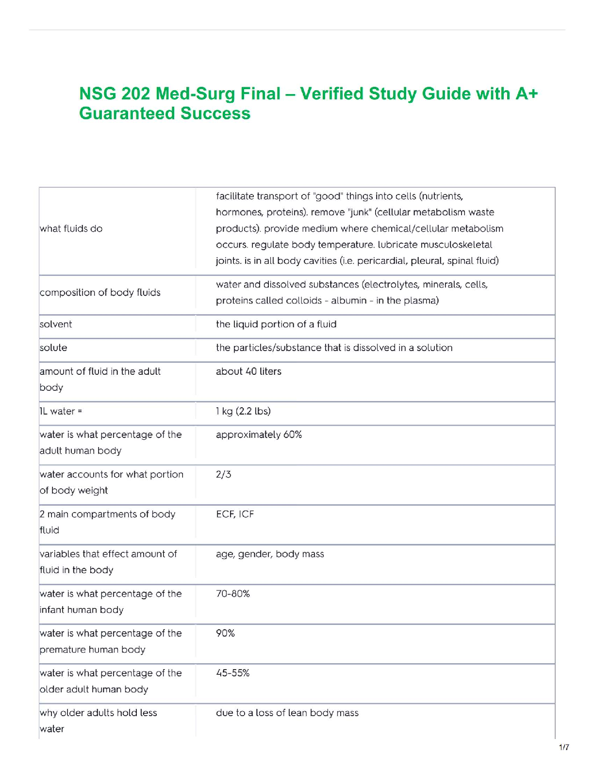Ace your NSG 202 Med-Surg final exam with this expertly crafted study guide, updated for the 2025/2026 academic year. This verified resource provides a comprehensive yet easy-to-digest breakdown of all essential topics, including detailed Q&A on body fluids and key physiological concepts. Perfectly aligned with the core curriculum and major textbooks like Ignatavicius, Workman & Rebar's 11th Edition, this guide is designed to ensure you understand the material deeply. Pass your exam with confidence on the very first try and secure that A+ grade, avoiding the hassle of resits!