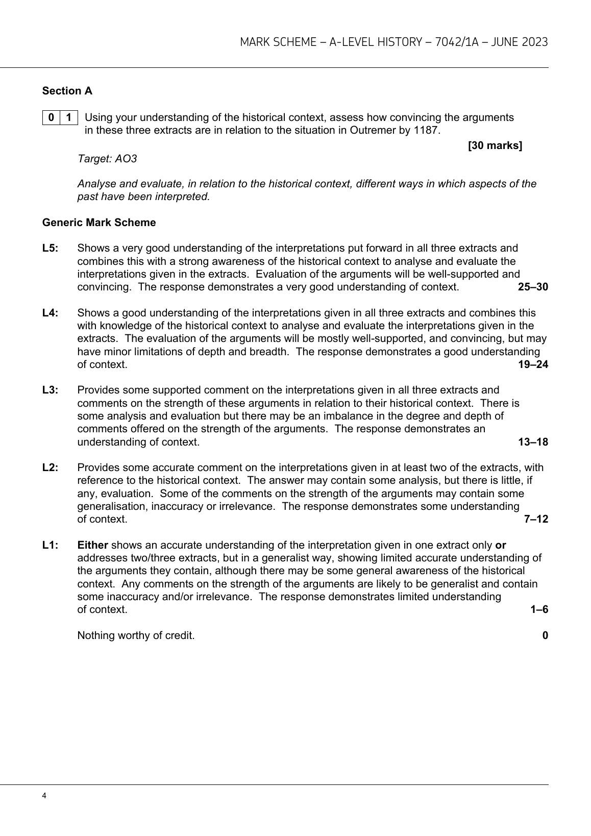 AQA A LEVEL HISTORY PAPER 1 MARK SCHEME 2023 (7042/1A: The Age of the Crusades, c1071–1204). DOWNLOAD OFFICIAL AND VERIFIED AQA A LEVEL HISTORY PAPER 1 MARK SCHEME 2023 ON www.leakedexams.com.