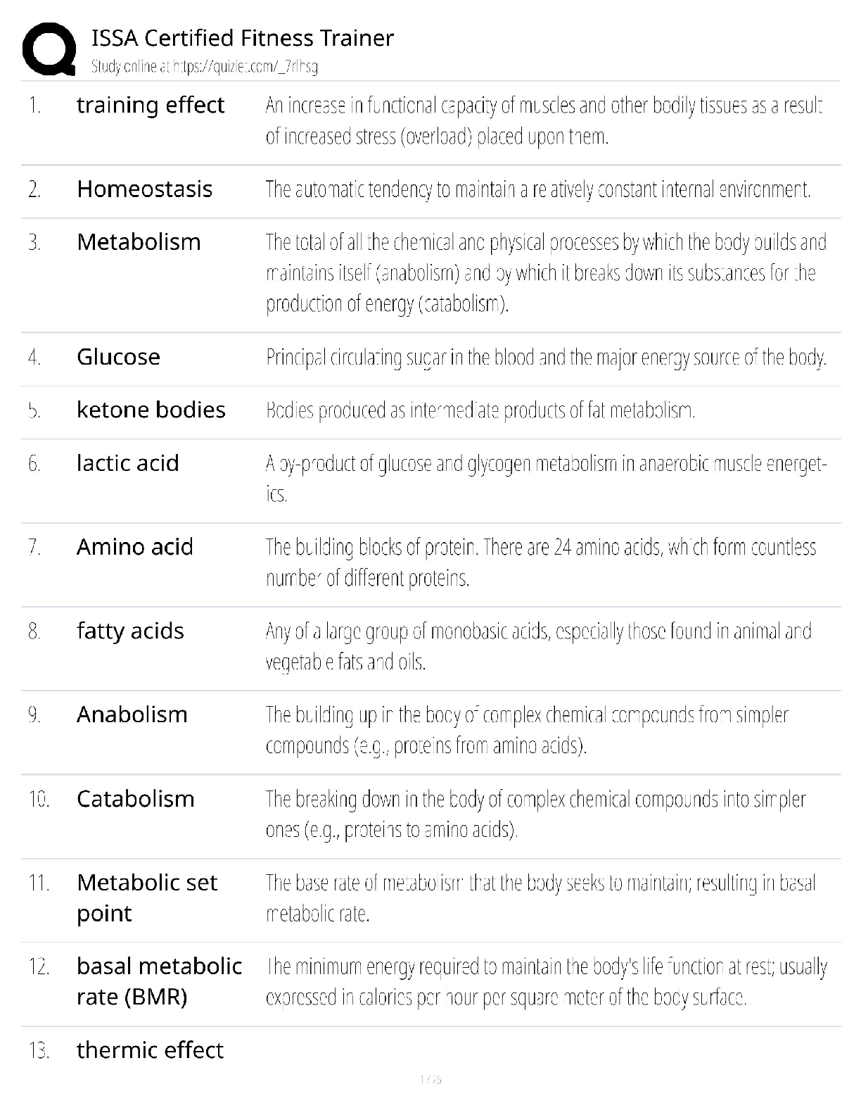 Master the core concepts for your ISSA Certified Fitness Trainer (CFT) exam with this comprehensive study guide, updated for the 2025/2026 testing cycle. This essential resource provides crystal-clear definitions for critical terminology, including training effect, homeostasis, metabolism, basal metabolic rate (BMR), and more. Designed to streamline your study process, these notes are your key to understanding the fundamental principles of fitness science and passing your ISSA certification on the first attempt. Avoid resits and launch your fitness career with confidence!