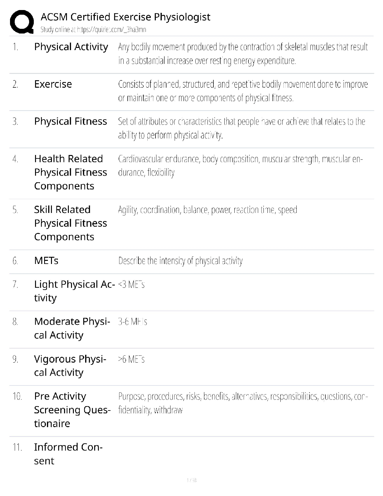 Tired of resits? Unlock your potential and become an ACSM Certified Exercise Physiologist (ACSM-EP) with our definitive 2025/2026 study guide. This comprehensive resource breaks down all the essential concepts you need to master for the certification exam. From fundamental definitions of physical activity and exercise to complex topics like health-related fitness components and pre-activity screening, we've got you covered. Carefully curated and aligned with the core content from 'ACSM's Resources for the Exercise Physiologist, 3rd Edition', this guide simplifies your study process. Designed to help you grasp key information quickly and effectively, this study guide is your ultimate tool to pass the ACSM-EP exam with confidence on your very first attempt. Stop worrying and start preparing for success today!