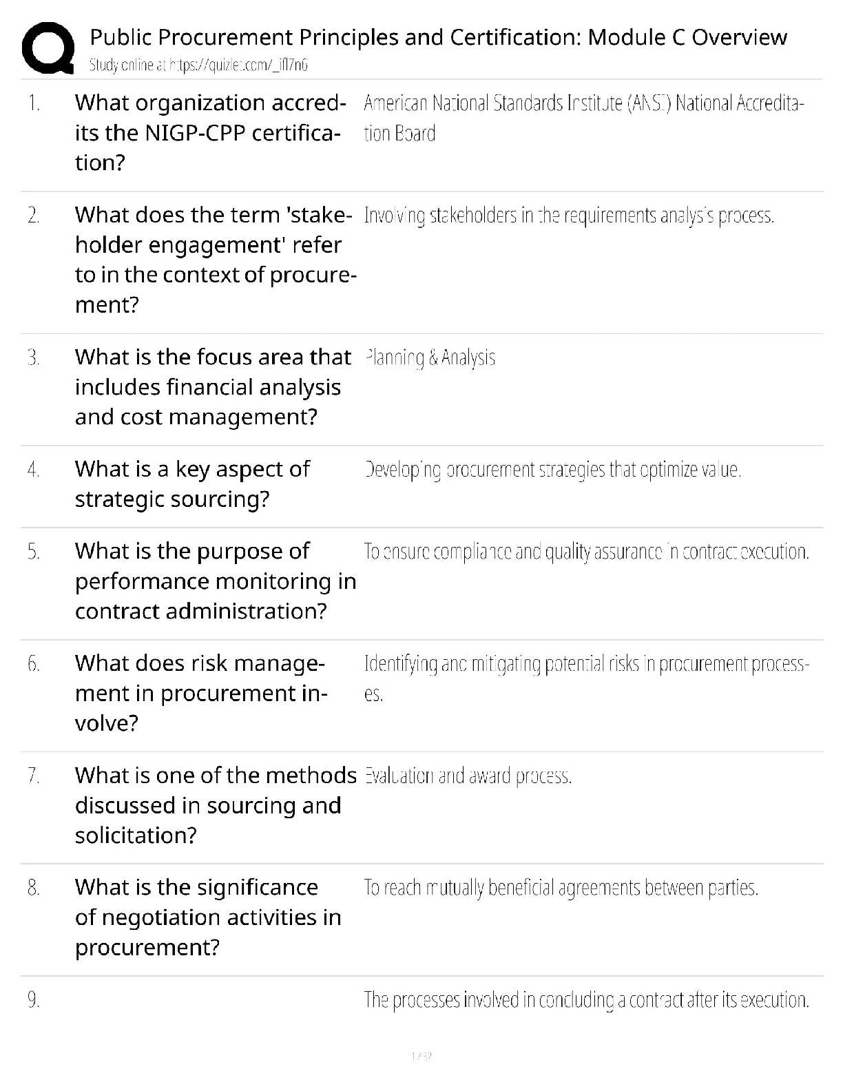 Ace your NIGP-CPP certification exam on the first try with our comprehensive Test Bank for Module C: Sourcing and Contracting. This latest 2025/2026 resource is expertly designed to help you master the core principles of public procurement. Inside, you'll find a detailed collection of questions and answers covering all critical focus areas, including Planning & Analysis, Strategic Sourcing, Stakeholder Engagement, Risk Management, and Contract Administration. Stop worrying about resits and start preparing effectively. Download now for instant access to the study materials you need for success!