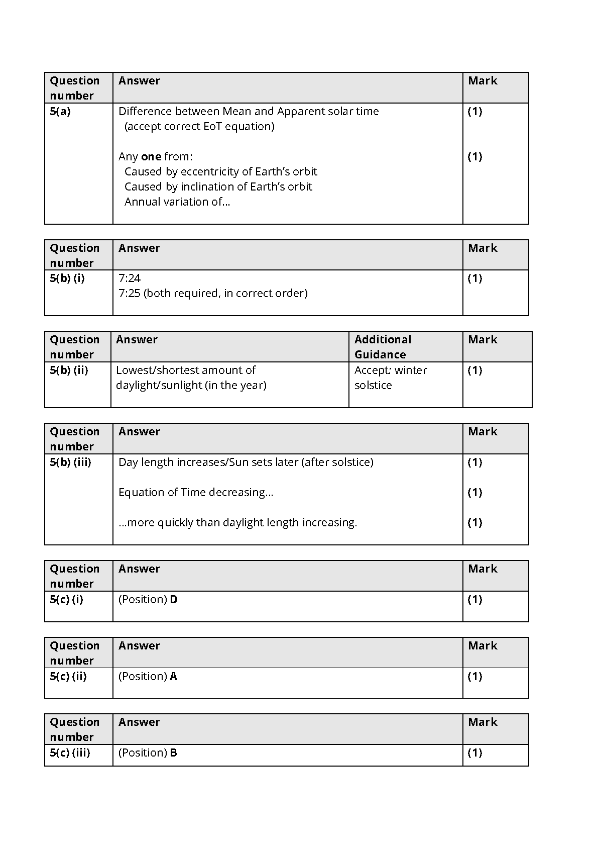 PEARSON EDEXCEL GCSE ASTRONOMY PAPER 1 2025 MARK SCHEME (1AS0/01)