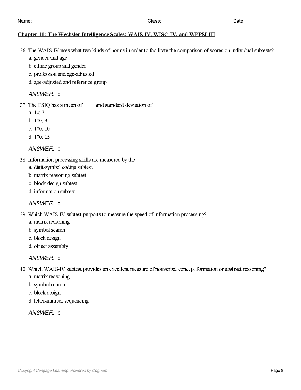 Test Bank For Psychological Testing Principles Applications