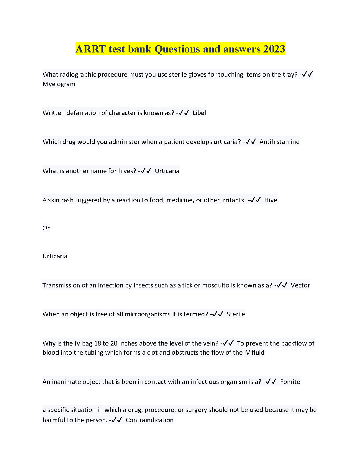 TEST BANK FOR ARRT. Questions and answers. DOWNLOAD this verified paper on www.leakedexams.com and access the PDF INSTANTLY!!!