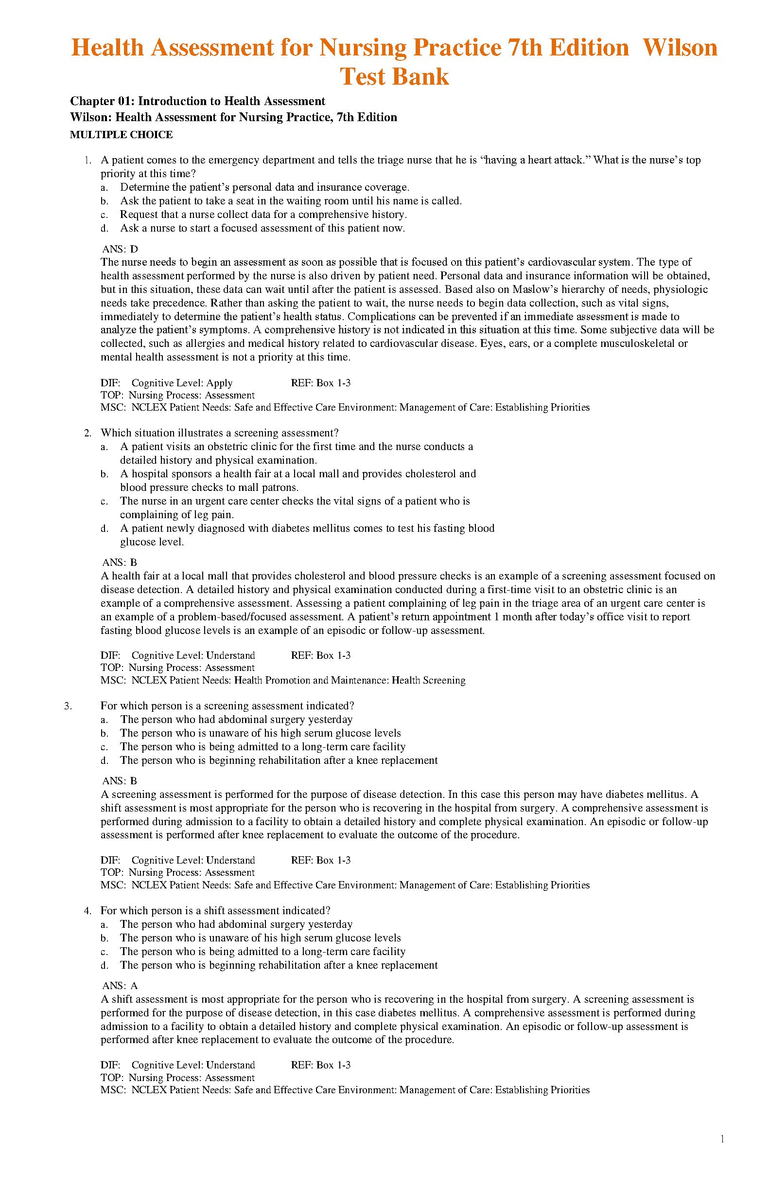 Test Bank For Health Assessment for Nursing Practice 7th Edition by Susan Fickertt Wilson, Jean Foret Giddens