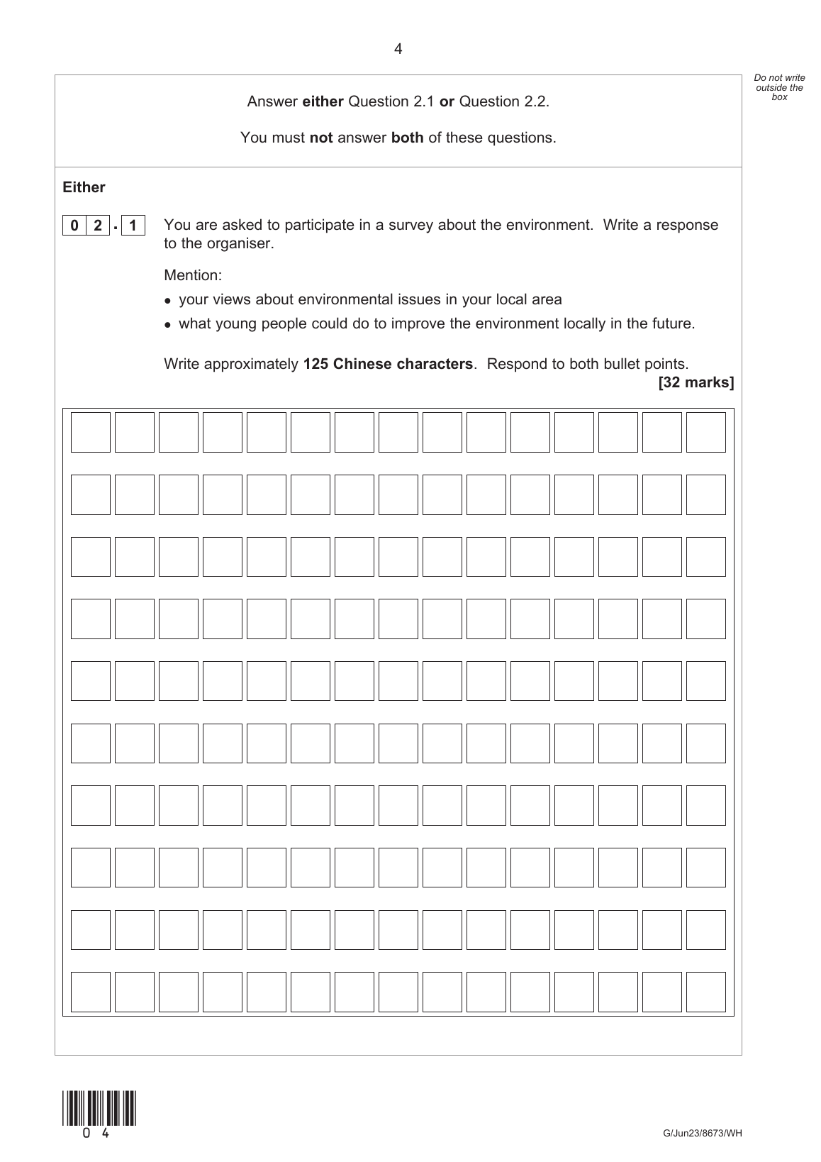AQA GCSE CHINESE (MANDARIN) PAPER 4 QUESTION PAPER 2023 (8673/WH: Writing - Higher Tier)
