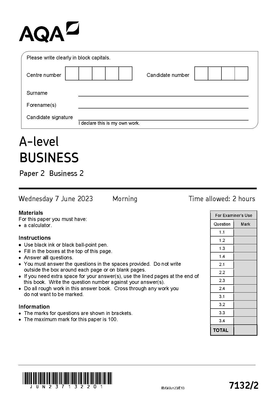 aqa a level business paper 2 question paper 2023 (7132/2). download official and verified aqa a level business paper 2 q...
