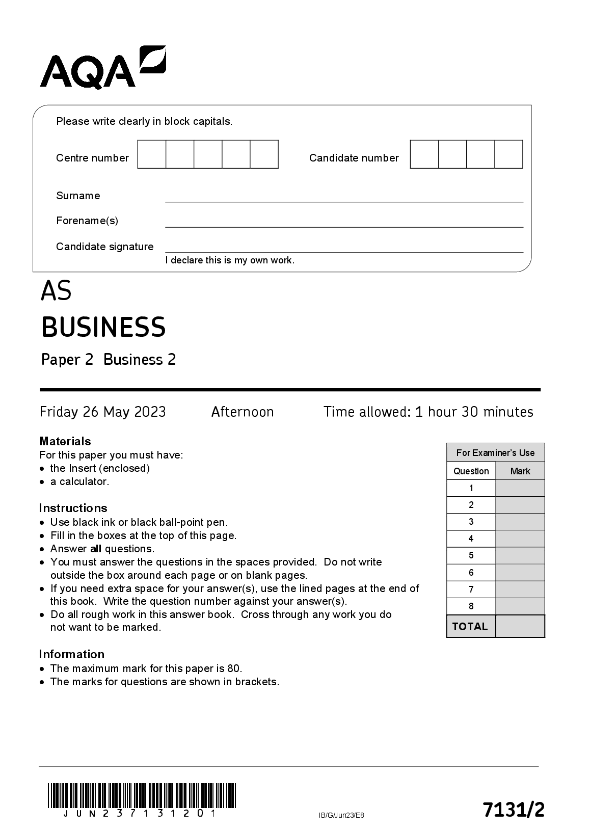 aqa as level business paper 2 question paper 2023 (7131/2). download official and verified aqa as level business paper 2...