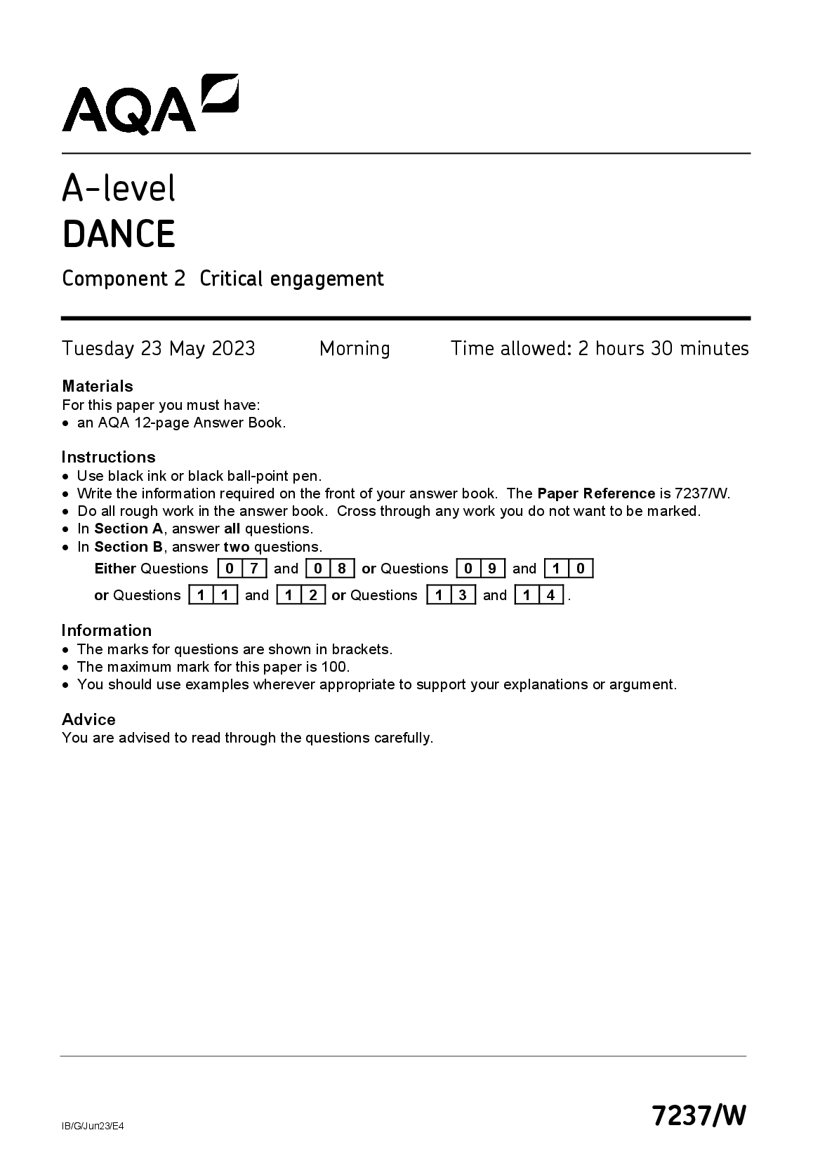 aqa a level dance paper 2 question paper 2023 (7237/w: critical engagement). download official and verified aqa a level...
