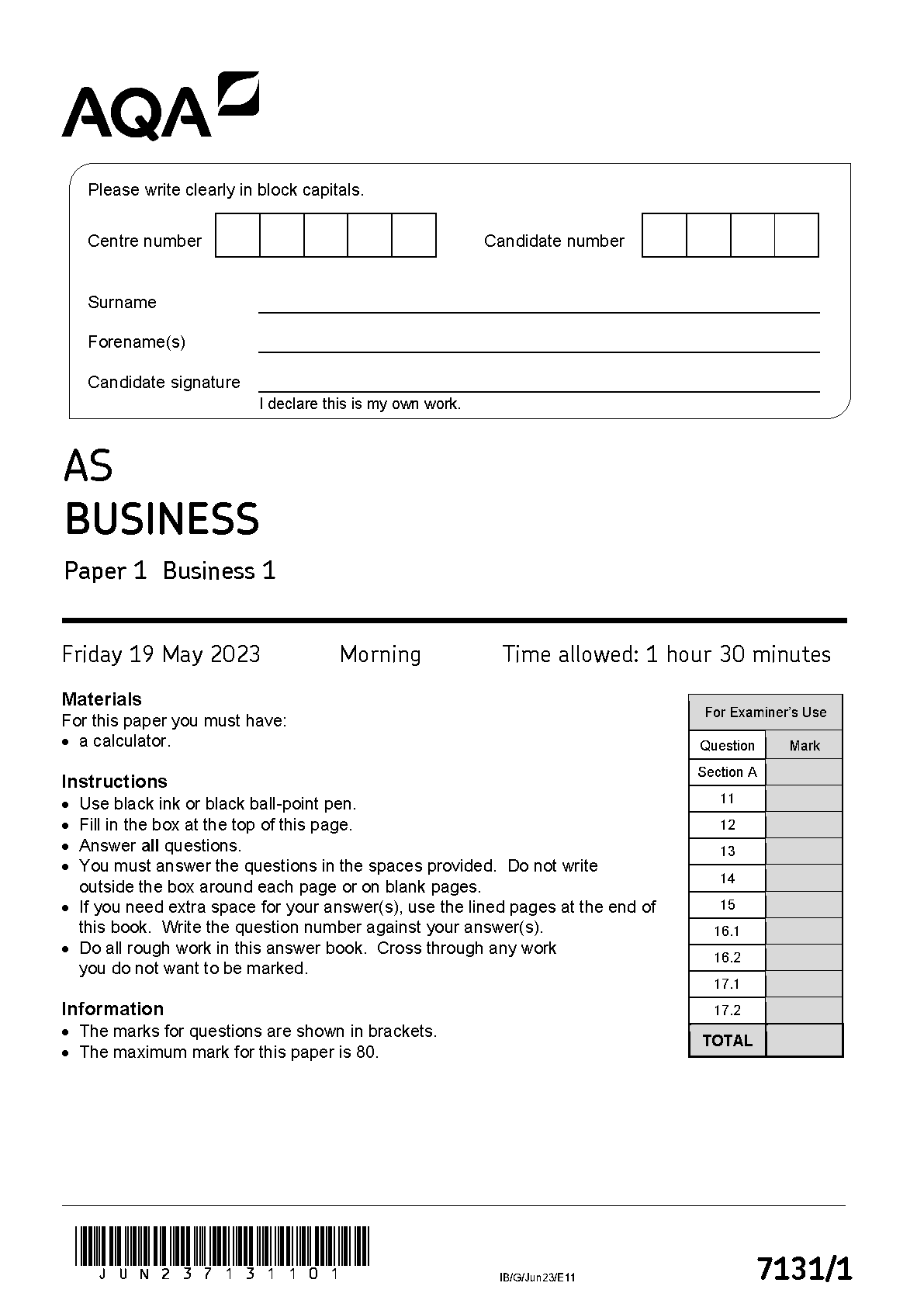 aqa as level business paper 1 question paper 2023 (7131/1). download official and verified aqa as level business paper 1...