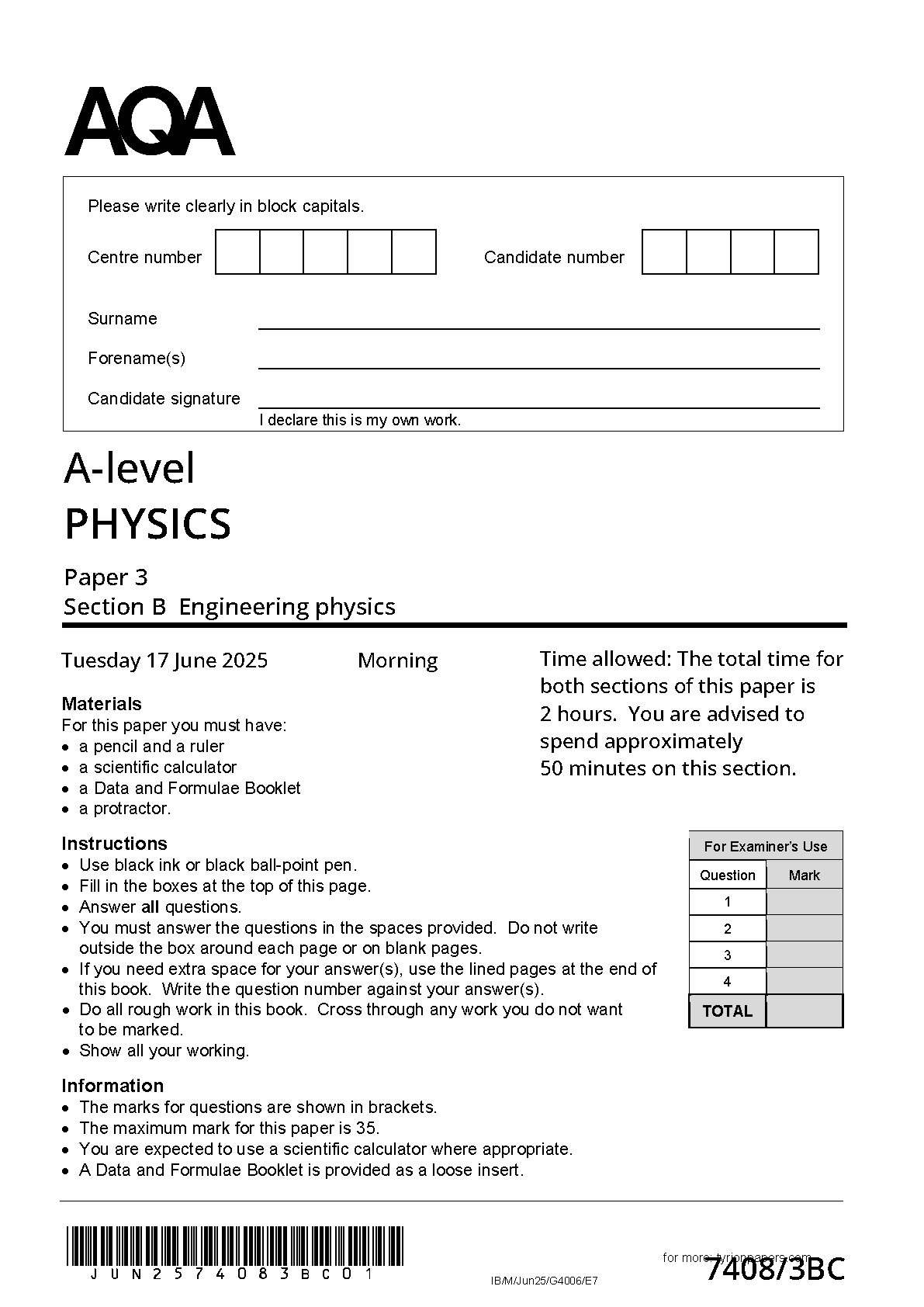aqa a level physics paper 3bc 2025 (7408/3bc: engineering physics). download this verified paper on www.leakedexams.com...