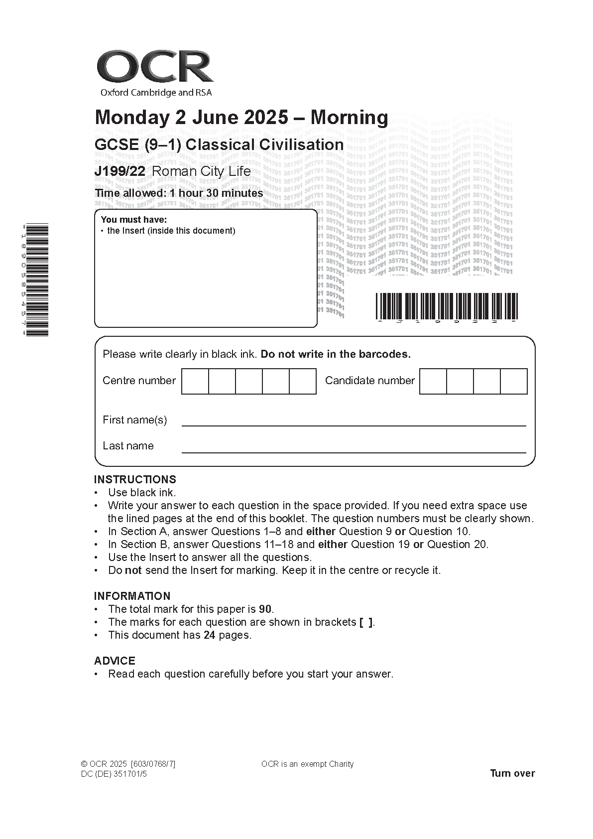 2025 OCR GCSE Classical Civilization PAPER 22 + MARK SCHEME. 2025 OCR GCSE Classical Civilization PAPER 22 + MARK SCHEME OCR GCSE Papers & mark schemes