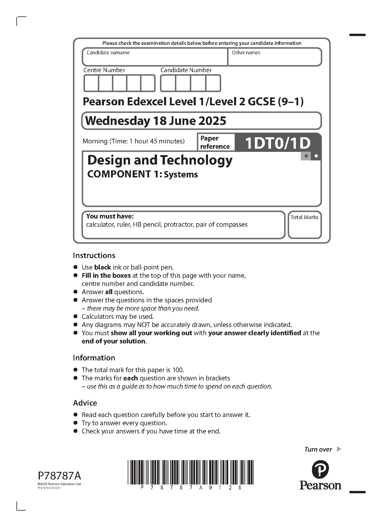 2025 Pearson Edexcel GCSE Design Technology Paper 1D and Mark Scheme Combined (1DT0/1D: Systems). 2025 Pearson Edexcel GCSE Design Technology Paper 1D and Mark Scheme Combined (1DT0/1D: Systems) Edexcel