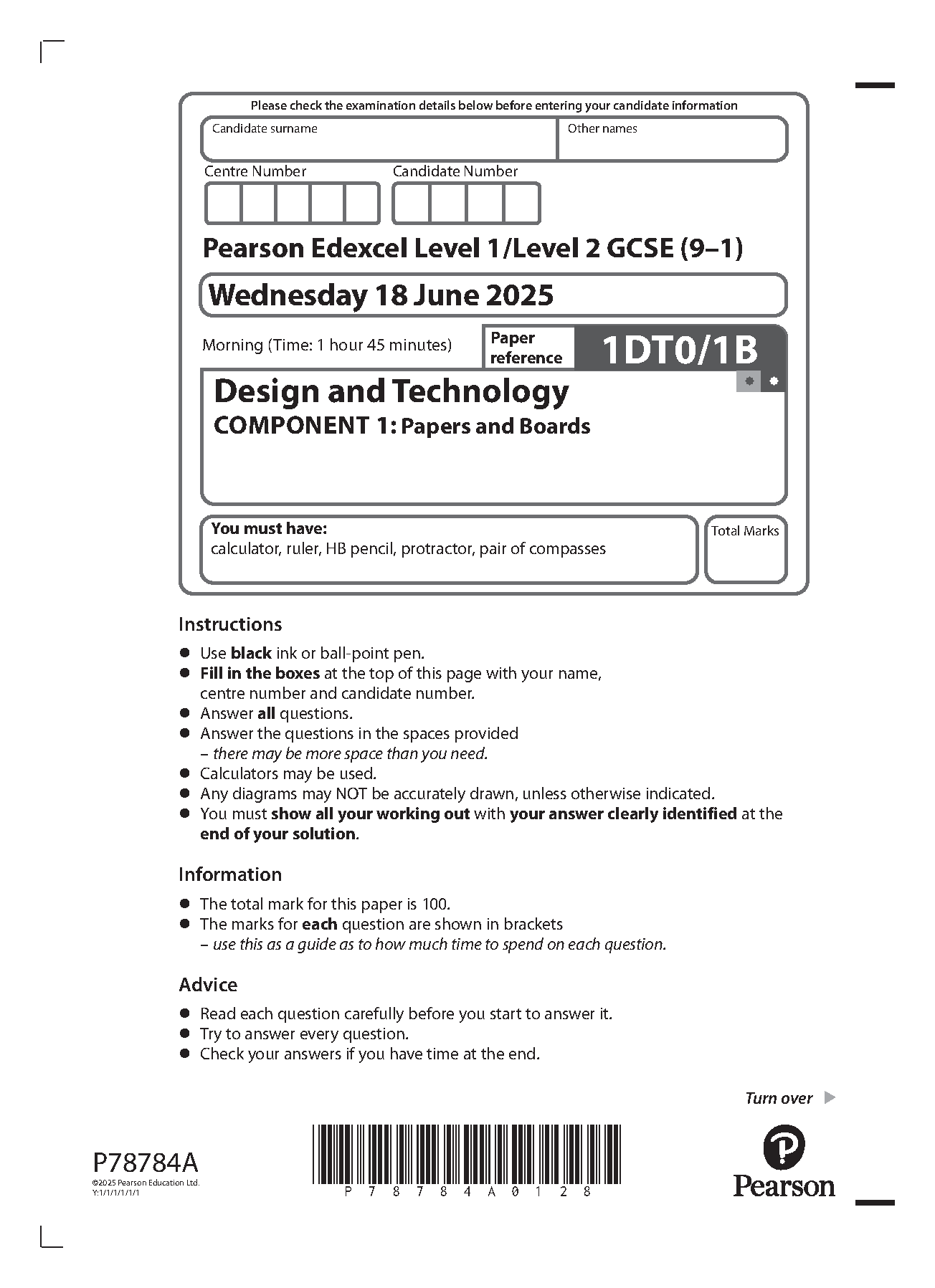 2025 Pearson Edexcel GCSE Design Technology Paper 1B and Mark Scheme Combined (1DT0/1B: Papers and Boards). 2025 Pearson Edexcel GCSE Design Technology Paper 1B and Mark Scheme Combined (1DT0/1B: Papers and Boards) Edexcel