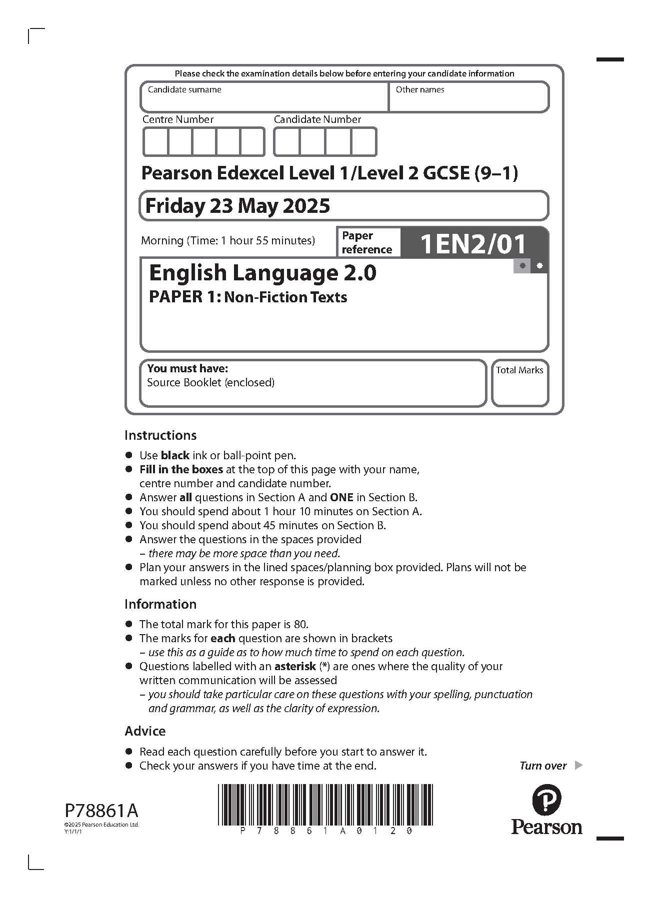 2025 Pearson Edexcel GCSE English Language 2.0 Paper 1 and Mark Scheme Combined (1EN2/01: Non-Fiction Texts). 2025 Pearson Edexcel GCSE English Language 2.0 Paper 1 and Mark Scheme Combined (1EN2/01: Non-Fiction Texts) Edexcel