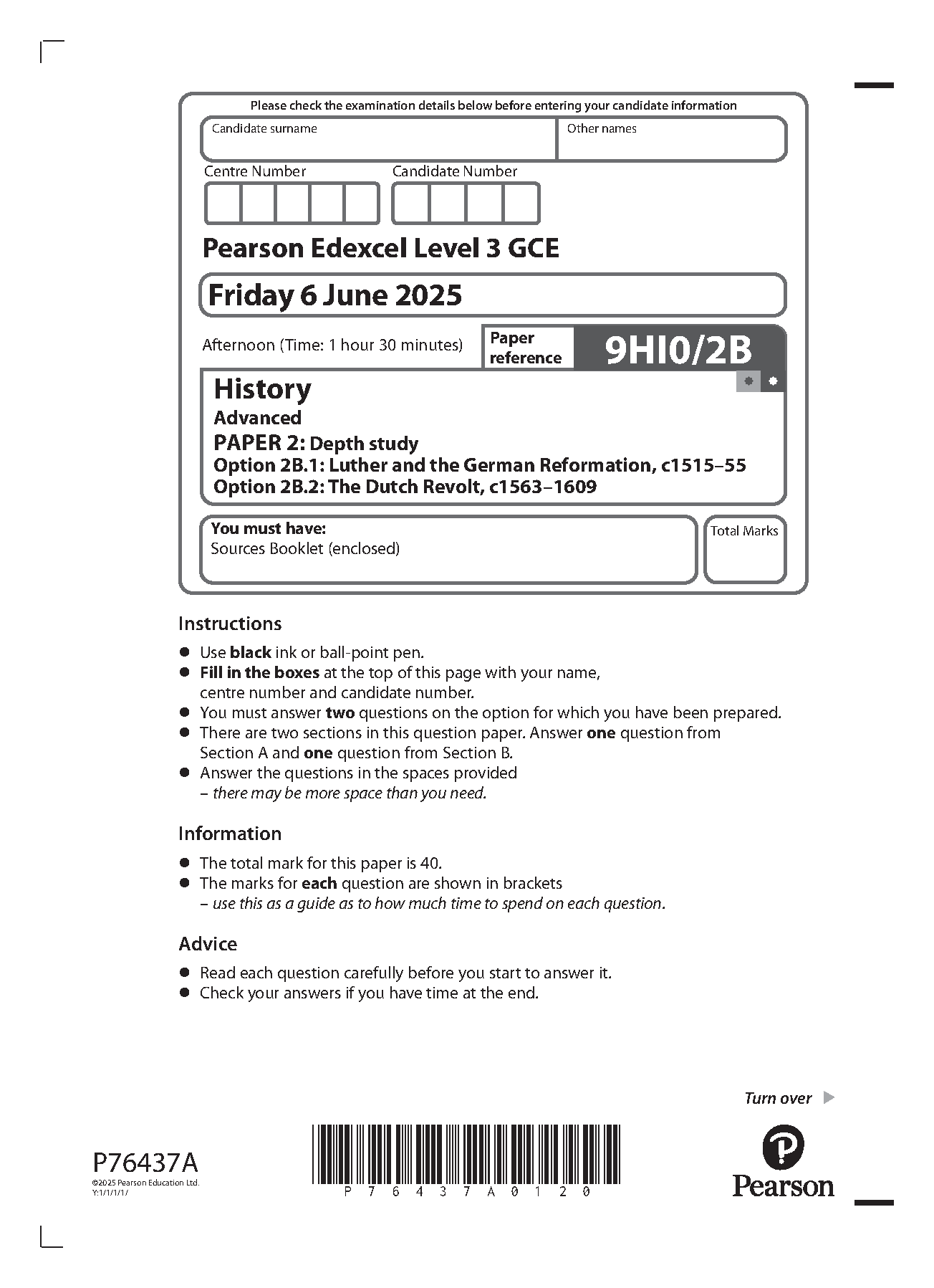 2025 Pearson Edexcel A Level History PAPER 2 and Mark Scheme Combined (9HI0/2B: Depth study). 2025 Pearson Edexcel A Level History PAPER 2 and Mark Scheme Combined (9HI0/2B: Depth study) Pearson Edexcel A and AS Papers and Mark Schemes