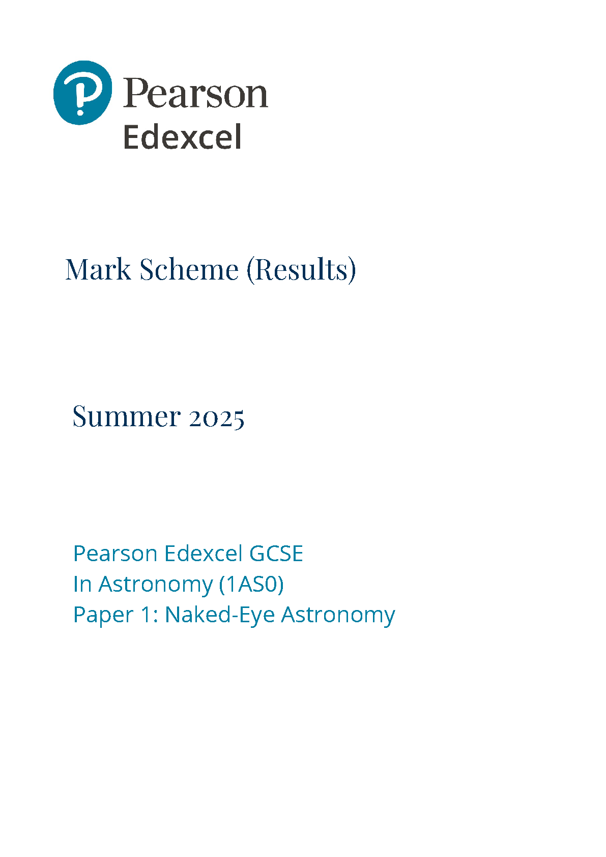 pearson edexcel gcse astronomy paper 1 2025 mark scheme (1as0/01: naked‑eye astronomy). download this verified paper on...