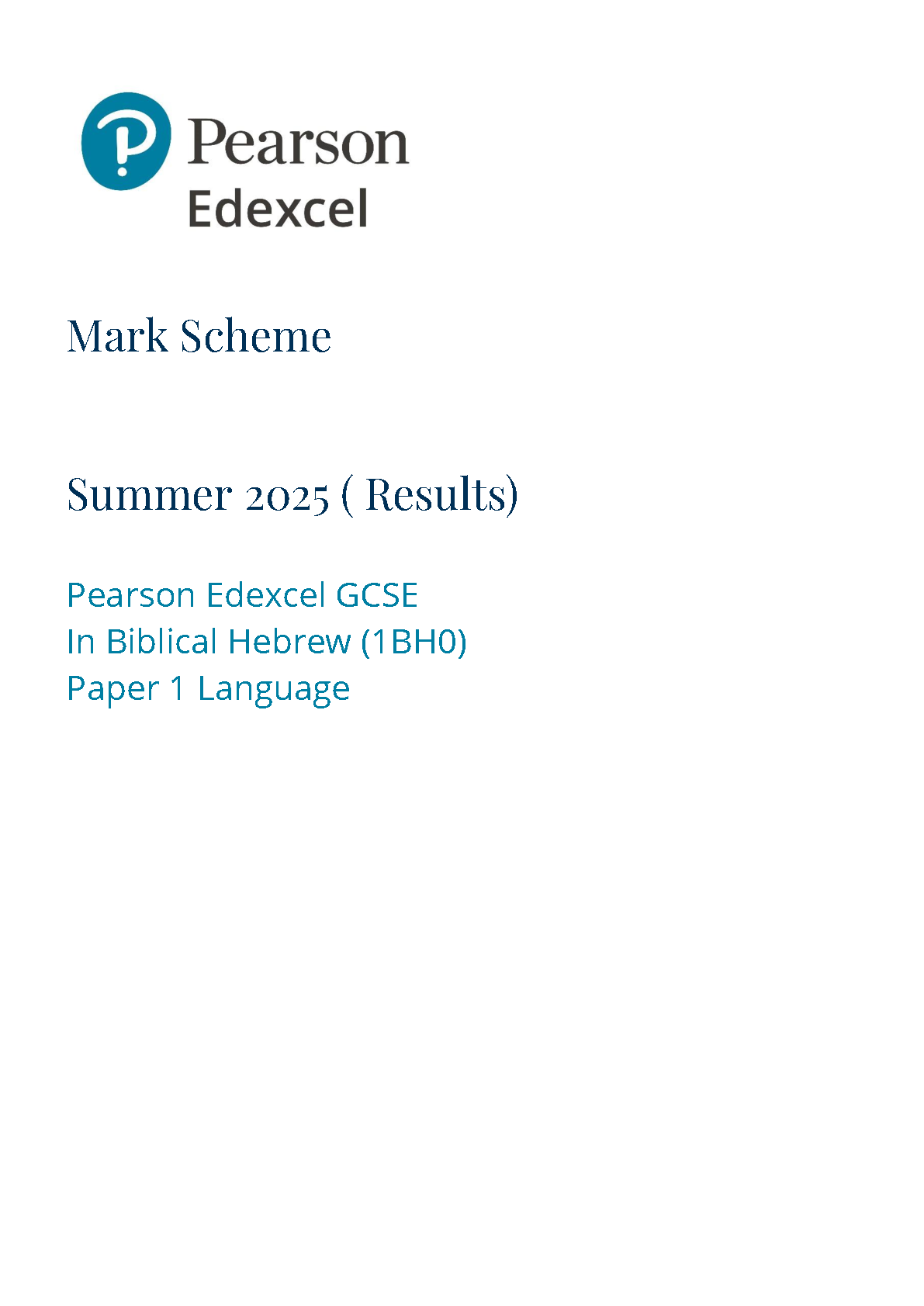 pearson edexcel gcse biblical hebrew paper 1 2025 mark scheme (1bh0/01: component 1: language). download this verified p...