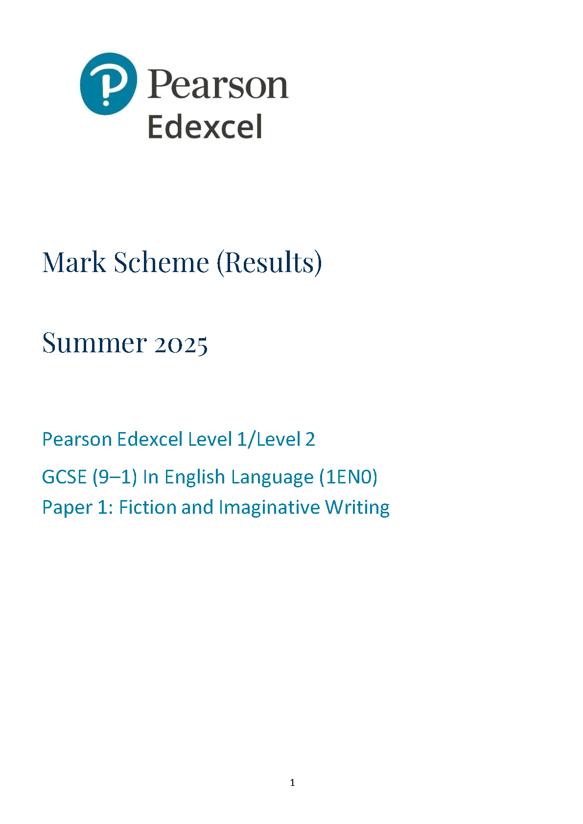 pearson edexcel gcse english language paper 1 2025 mark scheme (1en0/01: fiction and imaginative writing). download this...