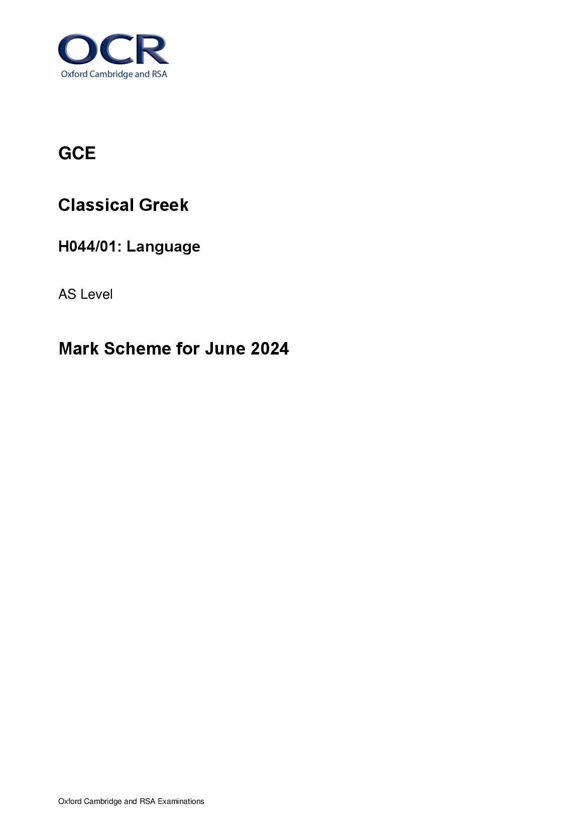 ocr gce classical greek as level mark scheme 2024(h044/01:language).download the official and verified paper on www.leak...