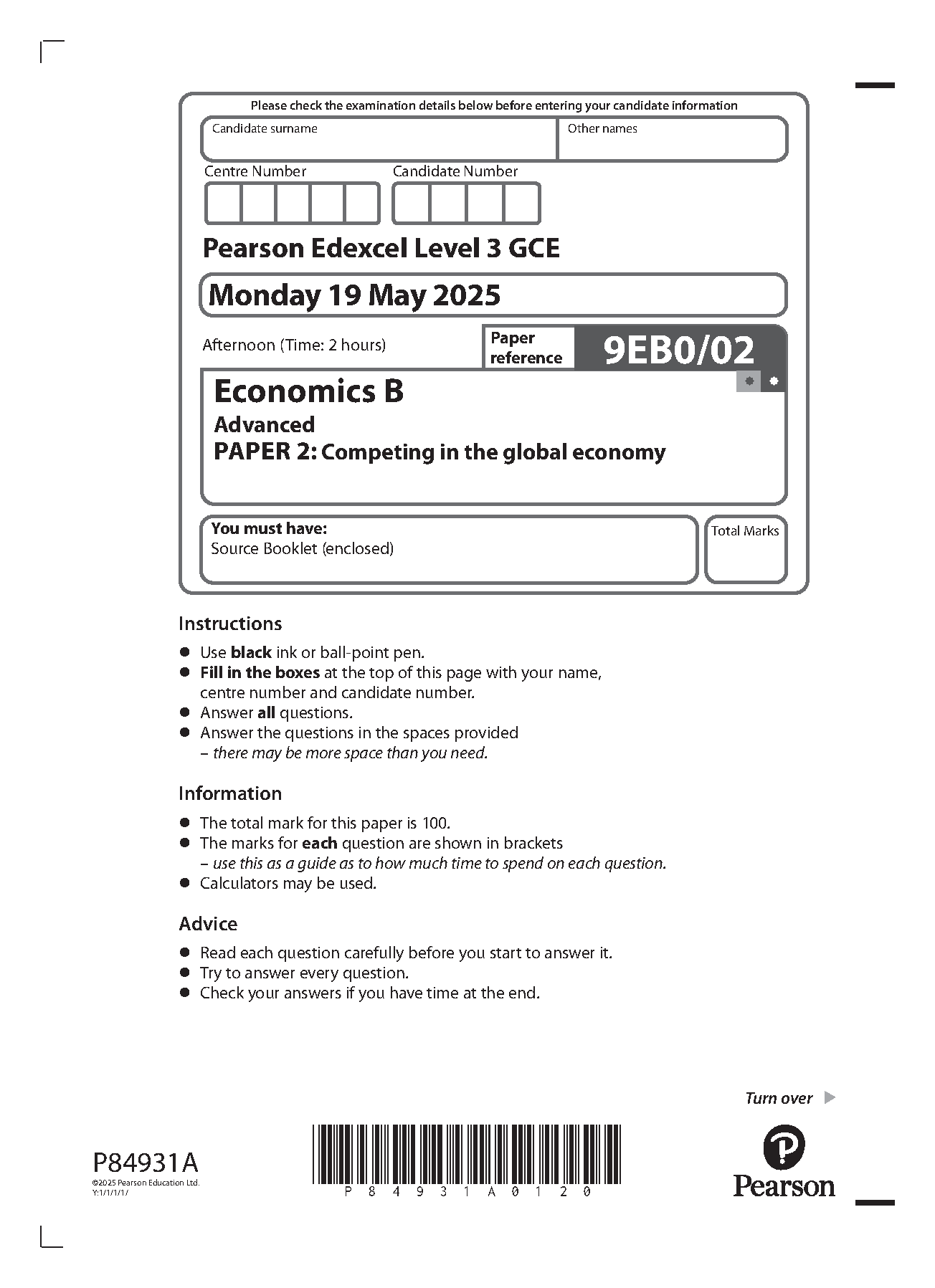 2025 pearson edexcel a level economics b paper 2 and mark scheme combined (9eb0/02: competing in the global eco